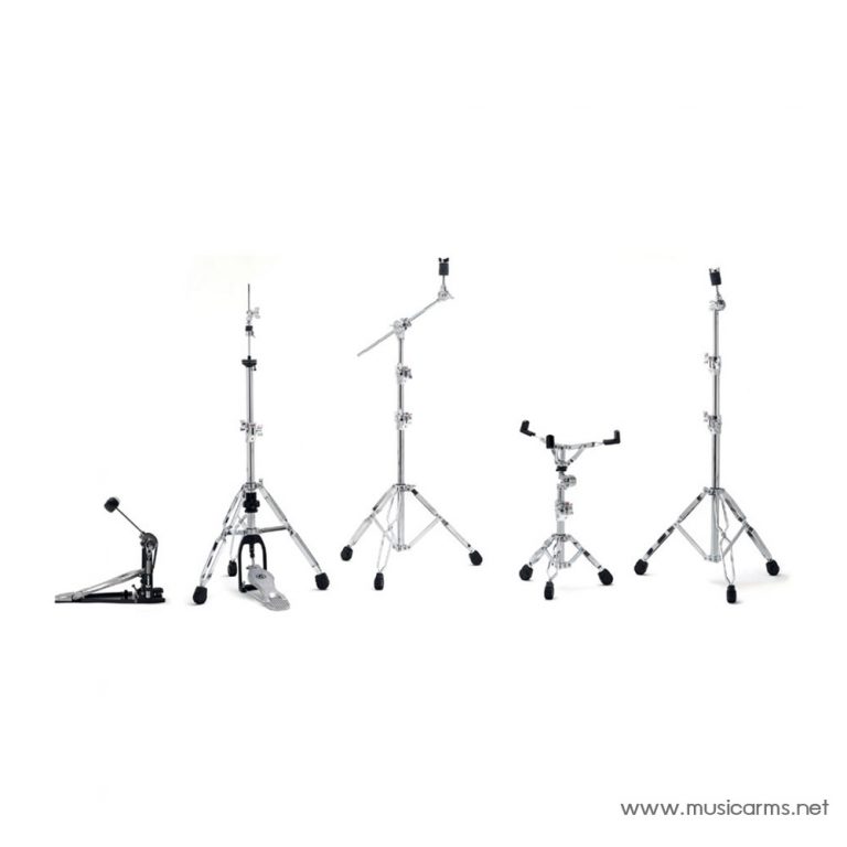 - 6700 heavy duty hardware pack includes: (1) snare stand, (1) hi hat stand, (1) boom cymbal stand, (1) straight cymbal stand, (1) bass drum pedal.