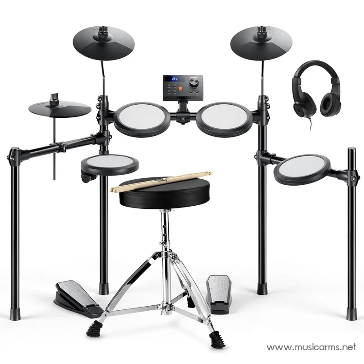 | อุปกรณ์ในชุด | ฉาบ Hi-hat, Crash, Ride, แป้นเหยียบ 2 ตัว, เก้าอี้กลอง, หูฟัง, ไม้กลอง, โมดูลเสียง |