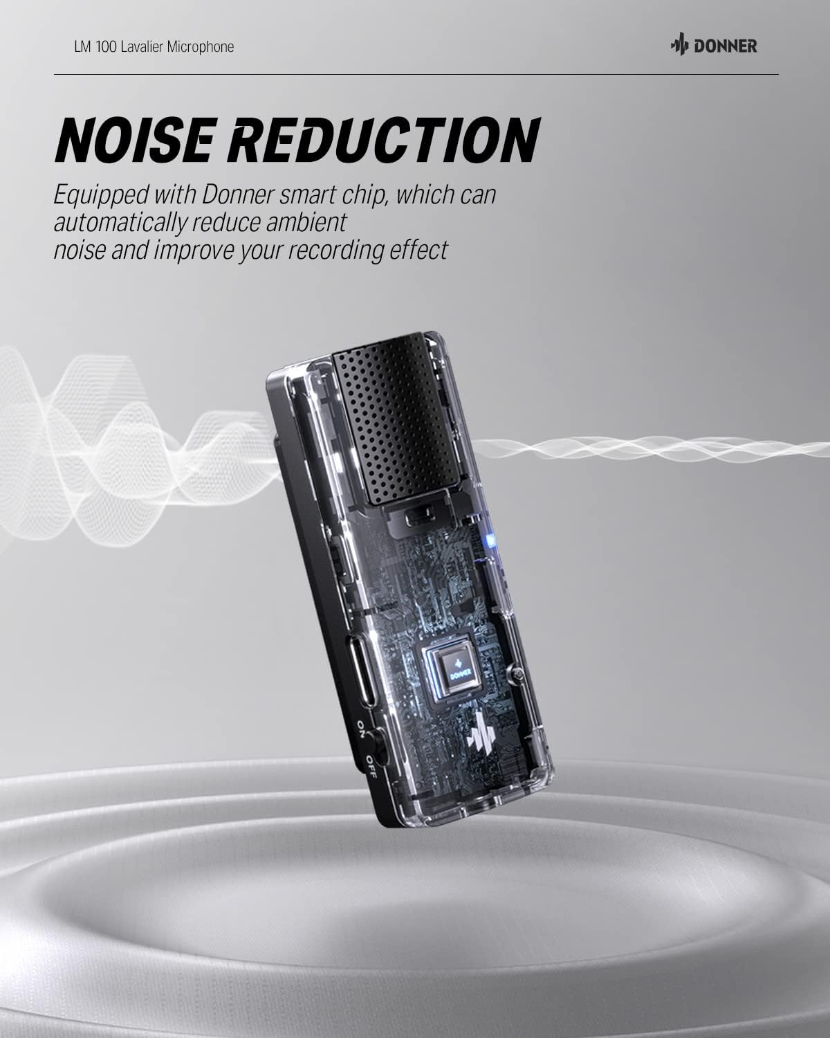 - 【การลดเสียงรบกวนอัตโนมัติ】: ชิปอัจฉริยะ Donner ช่วยลดเสียงรบกวนรอบข้าง ให้เสียงบันทึกที่คมชัดแม้ในสภาพแวดล้อมที่มีเสียงดัง