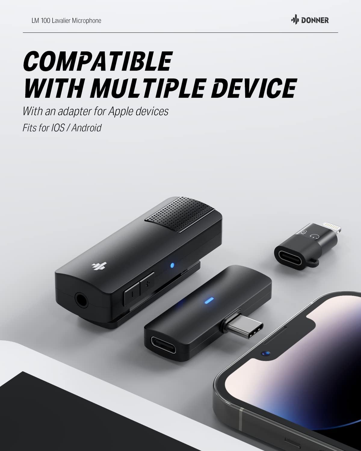 - 【Automatic Noise Reduction】The wireless lavalier microphone is equipped with Donner smart chip that can automatically reduce ambient noise and effectively optimize the recording effect, allowing you to record clearly in a noisy environment.