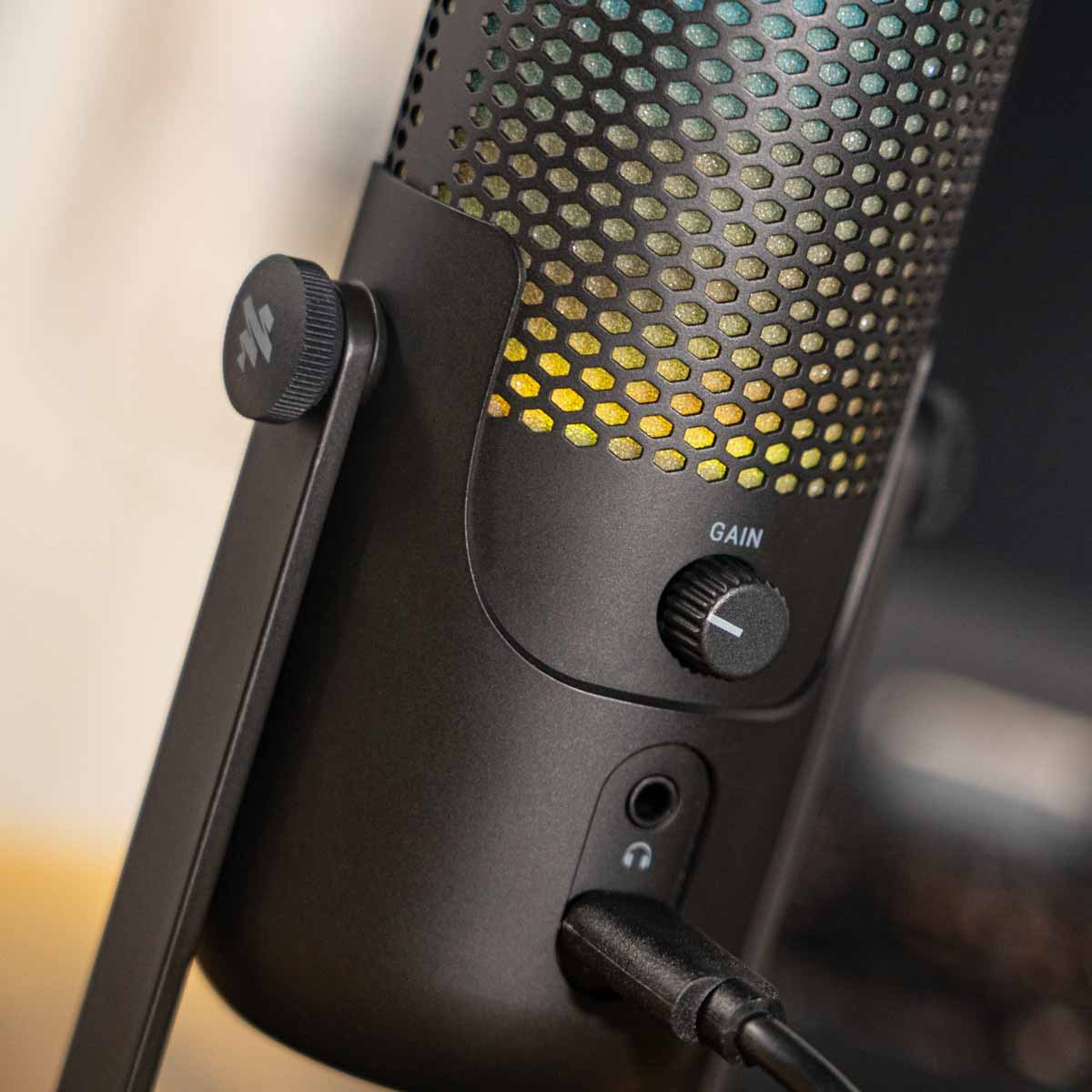 ไมโครโฟนคอนเดนเซอร์สามารถปรับเกน เสียง และปิดเสียงได้โดยตรง การเชื่อมต่อ USB-C ไม่มีการหน่วงเวลา และการเสียบแล้วใช้งานได้หมายความว่าไม่จำเป็นต้องติดตั้งไดรเวอร์ ไมโครโฟน Donner มีแจ็คหูฟัง 3.55 มม. เพื่อให้คุณสามารถตรวจสอบเสียงของคุณและเสียงของอุปกรณ์ได้โดยไม่ต้องใช้ลำโพงภายนอก ทำให้การออกอากาศสดสะดวกยิ่งขึ้น