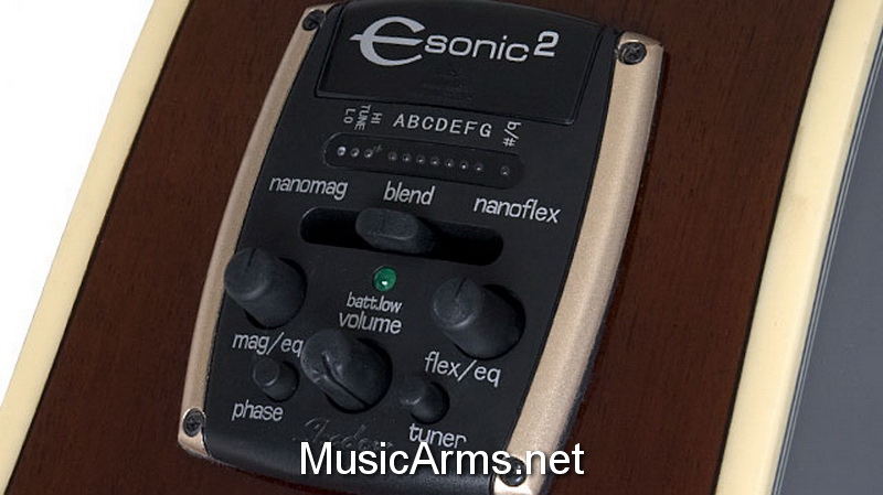 | Controls | eSonic2™ preamp with built-in tuner, stereo output, Master Volume Pot, NanoMag™ EQ Pot, NanoFlex™ EQ Pot, Phase “Anti-Feedback” Switch, Electronic Tuner Activation w/Output Mute Switch Binding: Body: 6-ply; Neck:1-ply, Headstock: 3-ply |