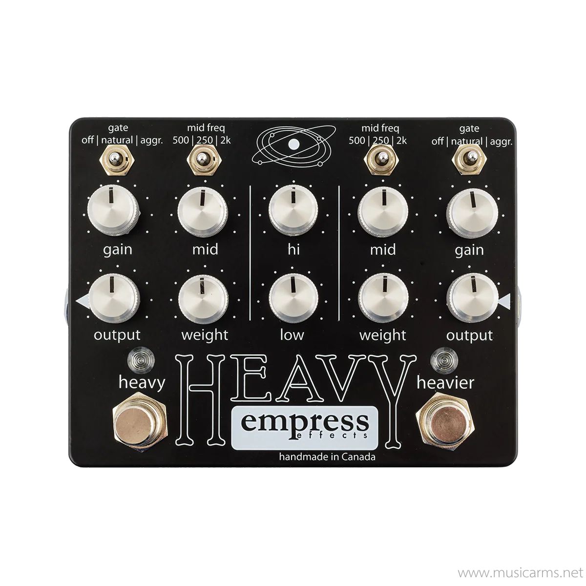 Empress Effects Heavy คือเอฟเฟกต์ที่ออกแบบมาเพื่อมือกีตาร์สาย Metal และชาวร็อคที่ต้องการ Gain ที่รุนแรงแต่ยังคงความชัดเจน มาพร้อมกับ 2 แชนแนลแยกอิสระ (Heavy และ Heavier) ที่ให้คาแรคเตอร์ที่แตกต่างกันเล็กน้อย แต่ละแชนแนลมีระบบ EQ และ Weight control เป็นของตัวเอง ช่วยให้คุณคุมย่านต่ำให้นิ่งกระชับ (Tight) และพุ่งทะลุมิกซ์ได้ในทุกระดับความดัง