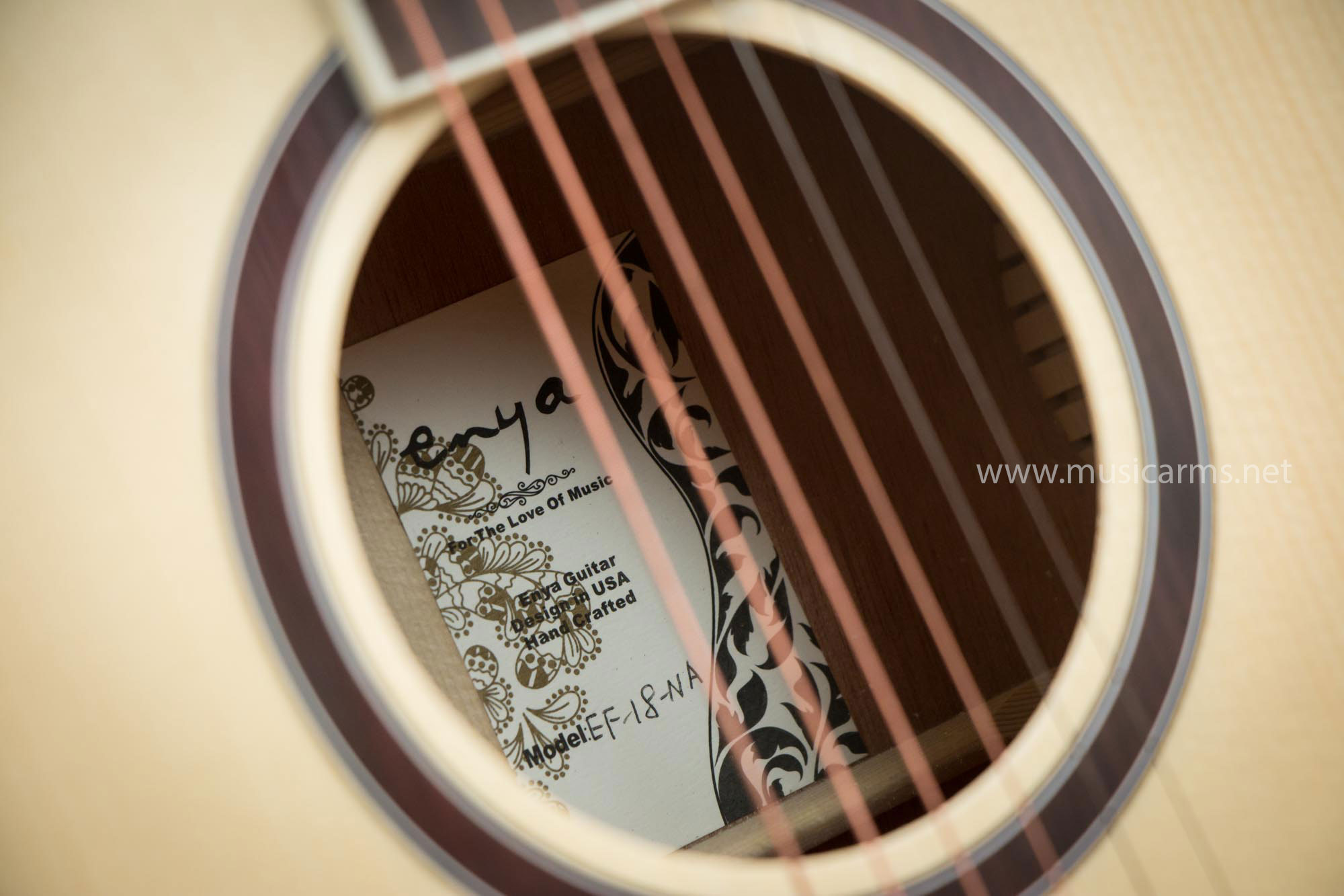 Enya EF-18 กีต้าร์ที่เหมาะกับผู้เริ่มต้นในราคาเบาๆ บอดี้เป็นทรงแกรนด์คอนเสิร์ต คอเว้า ตีคอร์ดก็ได้โซโล่ก็ดี ไม้หน้าเป็นไม้แองเกิ้ลแมนสปรู๊ซ ให้เสียงโทนใสดีเยี่ยมคล้ายกีต้าร์คลาสสิค ด้านข้างและหลังเป็นไม้อกาธิส รุ่นนี้จะมีความพิเศษตรงการดีไซด์ ไม่ว่าจะเป็นอินเลย์ลายบล็อกเปลือกหอย ดูหรูหรา หรือลูกบิดที่ชุบสีทองมาอย่างดี เสียงใสเป็นธรรมชาติ บอดี้ทรงแกรนด์คอนเสิร์ตที่มีขนาดเล็ก เล่นง่ายไม่ว่าจะเป็นผู้หญิงหรือเด็ก สะดวกต่อการพกพานอกสถานที่ จำนวน 20 เฟรต ปกติ เสียงนุ่มลื่น ราคาเบาๆเหมาะสำหรับผู้เริ่มต้นอย่างมาก