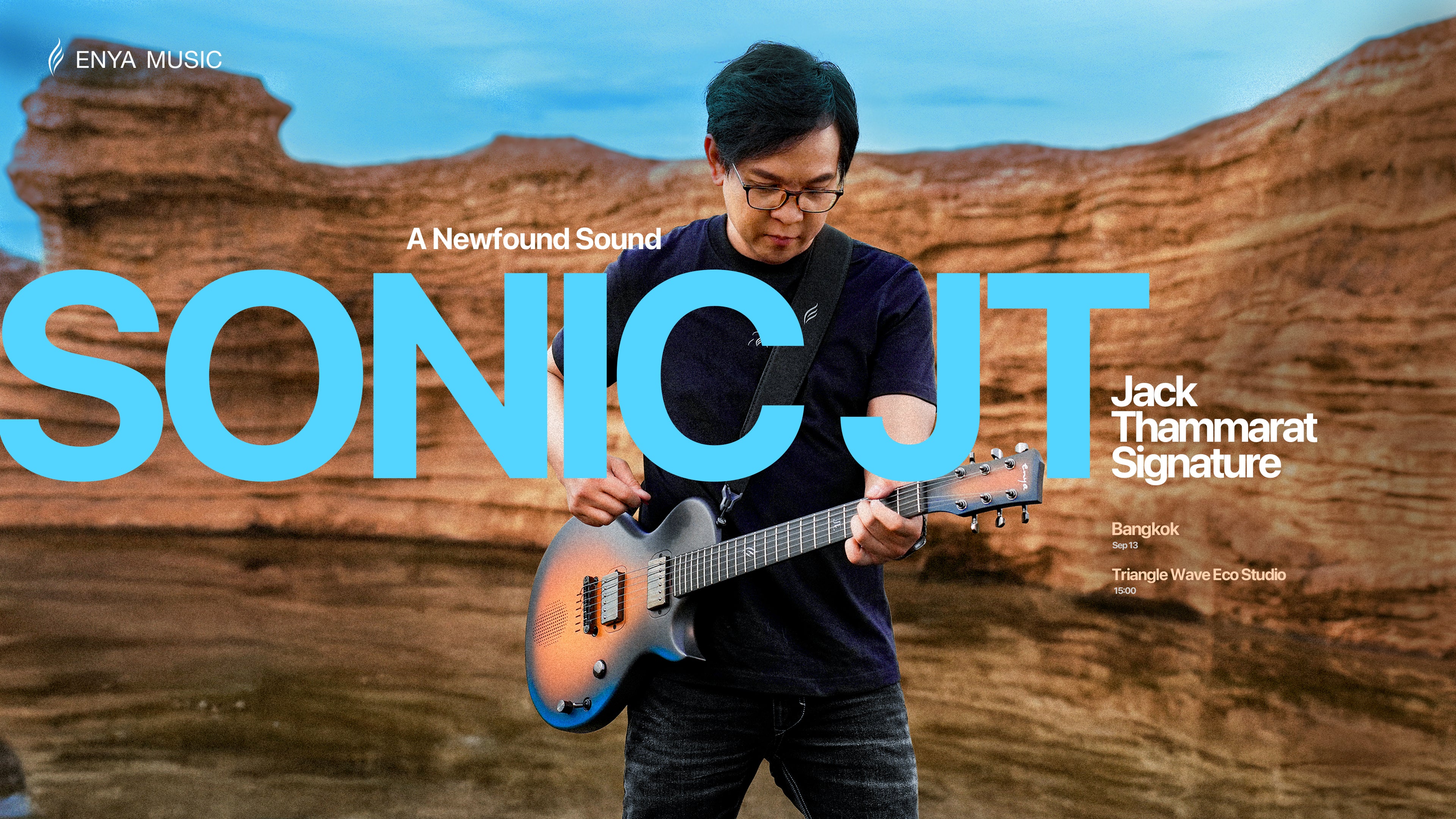 ENYA Nova Go Sonic JT คือกีตาร์ไฟฟ้าซิกเนเจอร์รุ่นพิเศษของ **Jack Thammarat** นักกีตาร์ชาวไทยผู้โด่งดังและคว้ารางวัล Guitar Idol ปี 2009 กีตาร์รุ่นนี้โดดเด่นอย่างยิ่งด้วยการผสมผสานงานดีไซน์ที่เคารพความคลาสสิกของกีตาร์ยุคทอง เข้ากับเทคโนโลยีและวัสดุล้ำสมัย ตัวบอดี้สร้างจาก **Acoustic Carbon Fiber Composite** ที่ขึ้นชื่อเรื่องความทนทานต่อทุกสภาพอากาศ ไม่ว่าจะเป็นความชื้นหรืออุณหภูมิที่เปลี่ยนแปลง ก็ไม่ส่งผลกระทบต่อเสียงและโครงสร้าง นอกจากนี้ บอดี้ยังออกแบบให้เป็นแบบห้องเสียง (Chambered Body) ซึ่งไม่เพียงแต่ช่วยลดน้ำหนัก แต่ยังเพิ่มเรโซแนนซ์ธรรมชาติ ทำให้เกิดเสียงที่กังวานแม้ไม่ได้เสียบปลั๊ก เป็นการสร้างสรรค์ที่สะท้อนตัวตนของ Jack Thammarat ได้อย่างสมบูรณ์แบบทั้งในด้านสไตล์และประสิทธิภาพการเล่น