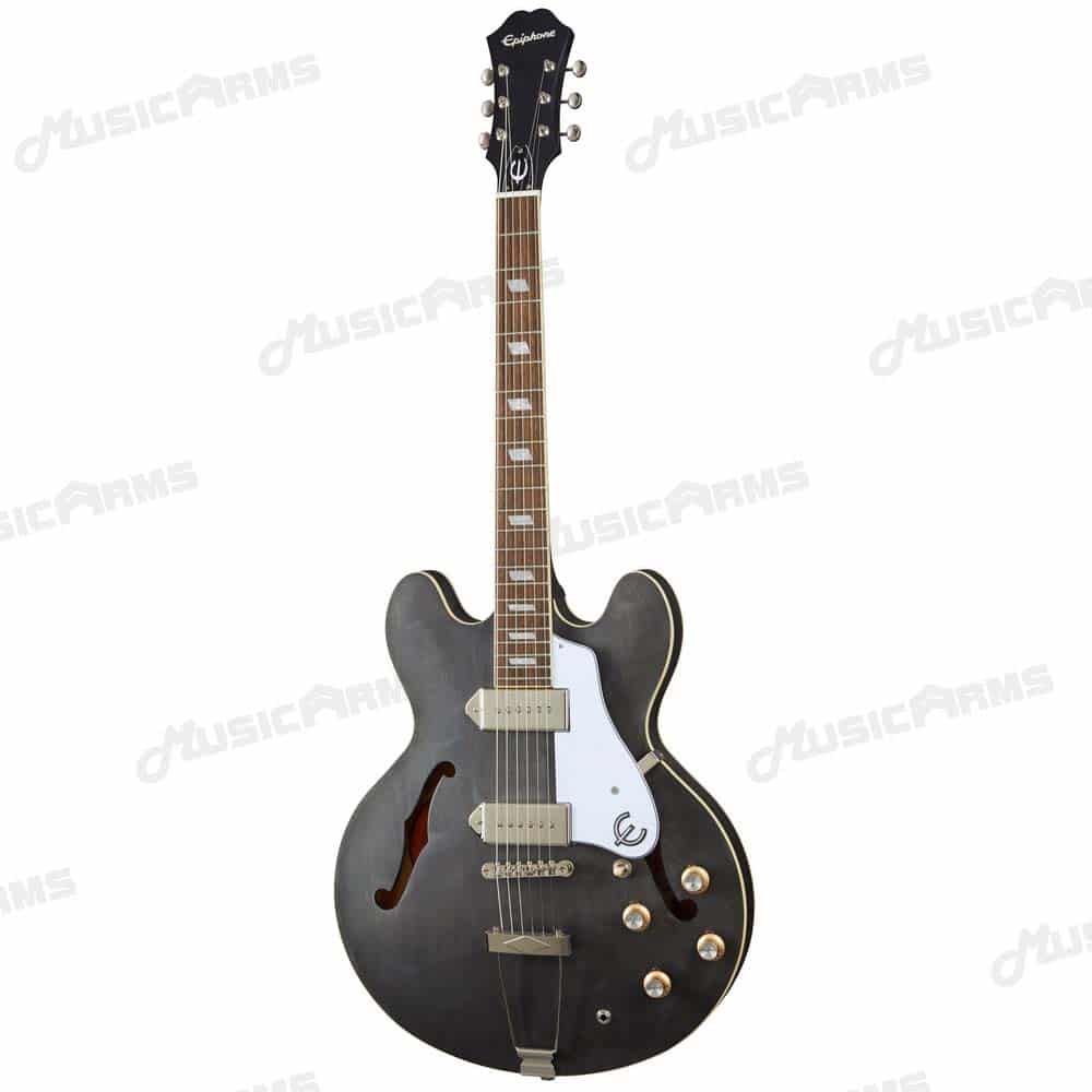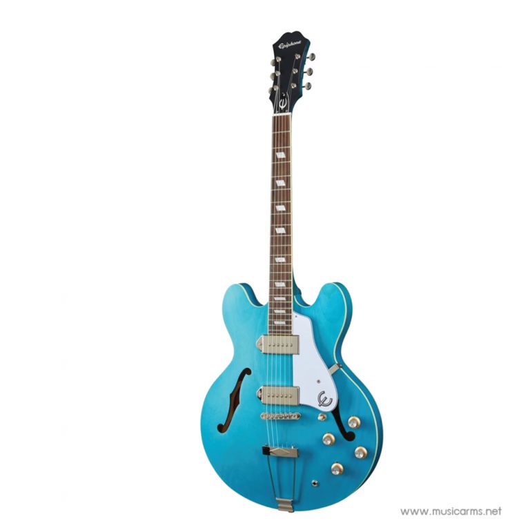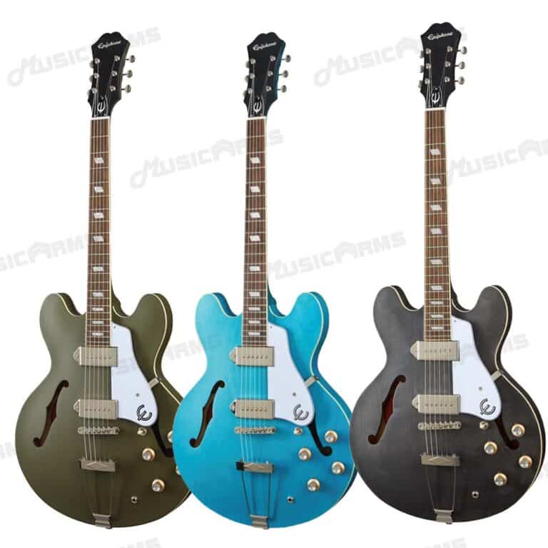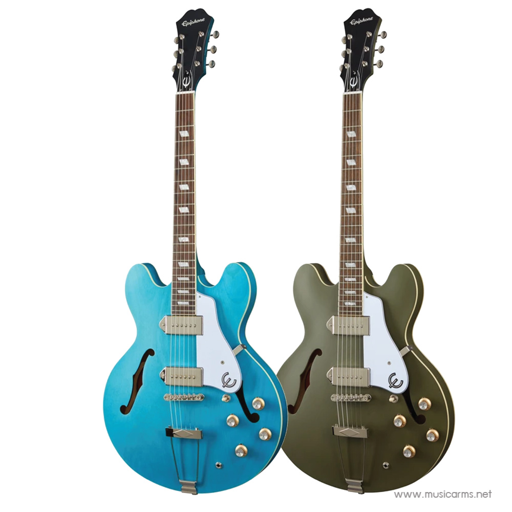 Epiphone Casino Worn งานที่เคยสร้างความประทับใจตั้งแต่ปี 1961 โดย Howlin’ Wolf ตำนานเพลงบลูส์ และ Keith Richards นำมาปรับปรุงใหม่ บอดี้เป็นแบบ Hollowbody ดีไซด์แบบวินเทจตามยุค 60 ที่โด่งดัง เช่นทรงคอทำแบบปี 60 เลย ออกแบบให้ดูคลาสสิค บอดี้ไม้เมเปิ้ล คอมะฮอกกานี ฟิงเกอร์บอร์ดอินเดียนลอเรล ตามแบบมาตรฐาน ซึ่งการที่บอดี้ไม้เมเปิ้ลจะได้เสียงกลางเด่นชัด และปิ๊กอัพที่ให้มาจะเป็นแบบ Single-Coil ทั้งสองตำแหน่ง เท่ากับว่ารุ่นนี้ซาวด์จะไม่หนามาก สามารถเล่นเพลงแนวบริทป็อปร็อคในยุค 60 แบบ The Beatles ได้สบายๆ ตามคอนเซ็ปต์ที่ทาง Epiphone อยากให้เป็นกีต้าร์สไตล์ร็อคแอนด์โรล ใครชอบความวินเทจแนวนี้ เชื่อเลยว่าหลงรักตั้งแต่แรกเห็น