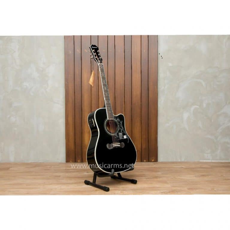 Dave Navarro’s six-string skills merge heavy metal, psychedelic, and modern rock styles into a new and exciting blend that has helped him became one of alternative rock’s first true guitar heroes. From his groundbreaking work with Jane’s Addiction and Red Hot Chili Peppers to his guest appearances on landmark recordings such as Nine Inch Nails’ Further Down the Spiral and Alanis Morissette’s Jagged Little Pill, Dave Navarro has made his eclectic style a trademark. Now, Dave teams up with Epiphone to create a versatile acoustic/electric guitar with exceptional stage sound, great playability, and solid-wood tone combined with a bold visual statement that is as unique as the man himself.