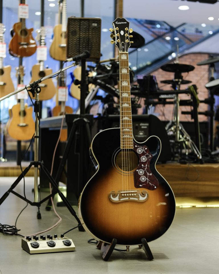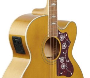 Epiphone EJ-200SCE แบรนด์กีต้าร์ที่ดังเเละมาเเรงอีกหนึ่งเเบรนด์ รุ่นนี้ผลิตมาเป็นทรงจัมโบ้ เหมาะกับผู้ที่มองหากีต้าร์ตัวใหญ่ เน้นเสียงที่มีความกังวานเป็นพิเศษเเละ ราคายังจับต้องได้อีกด้วย ไม้หน้าแท้ปิ๊กอัพได้คุณภาพ เเนะนำรุ่นนี้อีกหนึ่งรุ่นให้ได้ลองกันเลยครับ