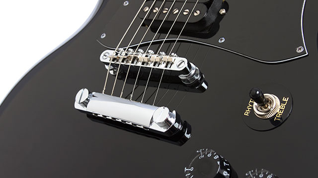- Controls : Neck pickup 1-Volume, 1-Tone, Bridge pickups 1-Volume, 1-Tone with full-