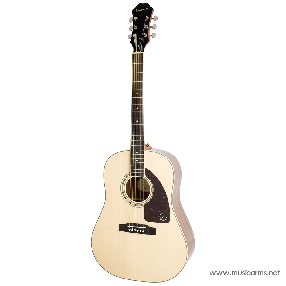 Epiphone J-45 Studio กีต้าร์ท็อปโซลิดในราคาเบาๆจากแบรนด์ดัง มาพร้อมการตกแต่งที่สวยงาม ให้โทนเสียงที่เต็ม ลึก และดังกังวาน ไม้หน้าเป็นท็อปโซลิดหรือไม้แท้สปรู๊ซ ให้เสียงกลางเด่นชัด ยิ่งนานไปไม้แห้งเสียงจะนุ่มนวลมากขึ้น ด้านหลังและข้างทำจากไม้มะฮอกกานีที่ให้เสียงฮาร์โมนิกที่สมบูรณ์ ต่อคอประกบแบบติดกาวช่วยให้คอและลำตัวของกีตาร์โปร่ง Epiphone มั่นคงโดยไม่สูญเสียโทนเสียงที่ละเอียดอ่อน คอไม้มะฮอกกานีเพิ่มความแข็งแรง ให้เสียงที่ยอดเยี่ยมหลมหลืนกันรูปลักษณ์ที่สวยงามได้อย่างลงตัว
