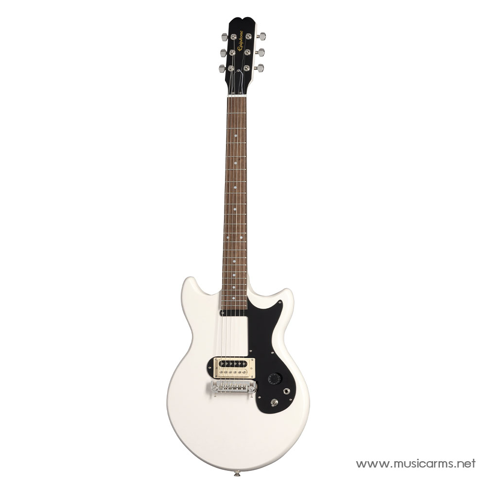 Epiphone Joan Jett Olympic Special ซิกเนเจอร์มือกีตาร์สาว Joan Jett เจ้าของเพลงดัง I Hated Myself for Loving You ในตำนาน มาในทรง Olympic Special ที่มีช่วงบอดี้แคบเล่นง่าย เช่นเดียวกับคอที่ปรับให้เหมาะกับสรีระของผู้หญิงจึงบางและเล่นได้ลื่นไหลกว่าคอปกติ บอดี้และคอเป็นไม้มะฮอกกานีให้โทนเสียงหนา ฟิงเกอร์บอร์ดอินเดียนลอเรล รุ่นนี้จะให้ปิ๊กอัพมา 1 ตำแหน่งป็นรุ่น PowerHammer PRO humbucker ซึ่งซาวด์หนาเล่นร็อคสบายๆ การควบคุมง่ายกับ 1 Volume และทีเด็ดคือ Kill switch ปุ่มกดเปิด/ปิดเสียงที่เป็นเอกลักษณ์ของ Joan Jett ใครที่ประทับใจกับซาวด์เพลงของเธอมาแล้ว รุ่นนี้จะเติมเต็มความมันส์จนต้องสะสมไว้ในคอลเล็คชั่น