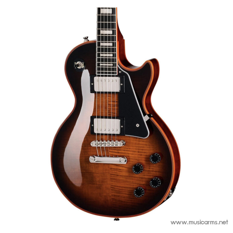 Les Paul Custom Widow สร้างขึ้นด้วยบอดี้ไม้มะฮอกกานีและไม้หน้า Flamed Maple มอบพื้นฐานโทนเสียงที่สมดุลระหว่างความอบอุ่นและความชัดเจน โครงสร้างไม้มะฮอกกานีเน้นความเต็มอิ่มของเสียงย่านกลางและ Sustain ในขณะที่ไม้หน้า Flamed Maple เพิ่มความสดใสและความคมชัดให้กับทุกโน้ต เสริมด้วย Binding 7 ชั้นและผิวเคลือบเงาของกีตาร์ วัสดุเหล่านี้ทำงานร่วมกันเพื่อมอบเสียงที่ตอบสนองได้ดีและชัดเจน ไม่ว่าคุณจะเล่นคอร์ดที่ซับซ้อนหรือไลน์ลีดที่ไพเราะ การผสมผสานของไม้โทนวูดระดับพรีเมียมนี้ช่วยให้มั่นใจได้ถึงความลึกของโทนเสียงและช่วงไดนามิกที่ยอดเยี่ยมในทุกการแสดง