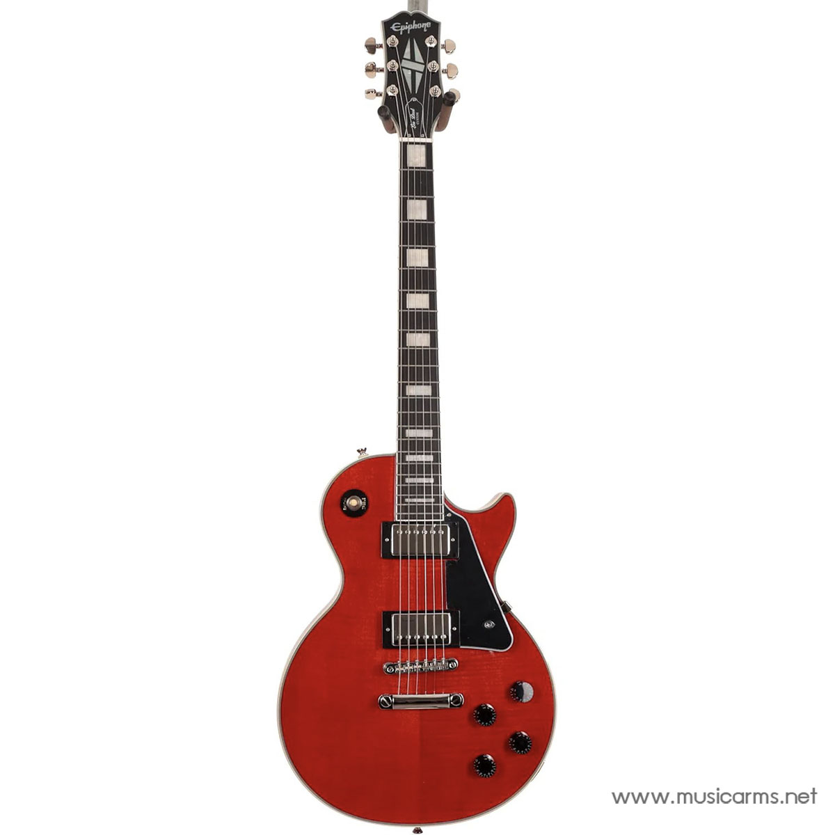 กีตาร์ไฟฟ้า Epiphone Limited Edition Les Paul Custom Figured Maple Top เป็นเครื่องดนตรีที่สวยงามสะดุดตาและให้โทนเสียงที่หลากหลาย ผสมผสานความงามแบบ Les Paul คลาสสิกเข้ากับความสามารถในการเล่นที่ทันสมัยได้อย่างลงตัว บอดี้ไม้มะฮอกกานีที่ให้เสียงก้องกังวานถูกปิดทับอย่างหรูหราด้วยไม้เมเปิลลายสวยงาม ซึ่งไม่เพียงแต่เพิ่มความน่าดึงดูดทางสายตาเท่านั้น แต่ยังเพิ่มความสว่างและความชัดเจนให้กับโทนเสียงอีกด้วย คอทรง SlimTaper ที่สบาย มักจะจับคู่กับฟิงเกอร์บอร์ดไม้อีโบนีที่เรียบลื่นและอินเลย์บล็อกมุก มอบประสบการณ์การเล่นที่รวดเร็วและหรูหรา ติดตั้งปิ๊กอัพฮัมบัคเกอร์ ProBucker ที่ได้รับการคัดสรรมาอย่างพิถีพิถัน กีตาร์ตัวนี้ให้โทนเสียงที่อบอุ่น นุ่มนวล และชัดเจน พร้อม Sustain ที่เพียงพอ เหมาะสำหรับดนตรีหลากหลายแนว ฮาร์ดแวร์ระดับพรีเมียม รวมถึงบริดจ์ LockTone Tune-O-Matic และลูกบิด Grover Rotomatic รับประกันความเสถียรในการตั้งสายและประสิทธิภาพที่เชื่อถือได้ การผสมผสานระหว่างส่วนบนของไม้เมเปิลลายสวยงามที่โดดเด่นและการตกแต่งแบบ Les Paul Custom คลาสสิก ทำให้กีตาร์รุ่นลิมิเต็ดอิดิชั่นนี้เป็นเครื่องดนตรีที่น่าปรารถนาสำหรับผู้เล่นที่แสวงหาทั้งโทนเสียงที่ยอดเยี่ยมและความสวยงามที่สะดุดตา