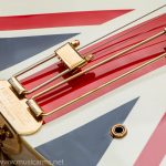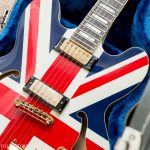 The Ltd. Ed. “Union Jack” Sheraton Outfit comes with a 1960s style vintage hard case with a gray exterior and blue interior along with a Certificate of Authenticity, a guitar user’s manual, and more.
