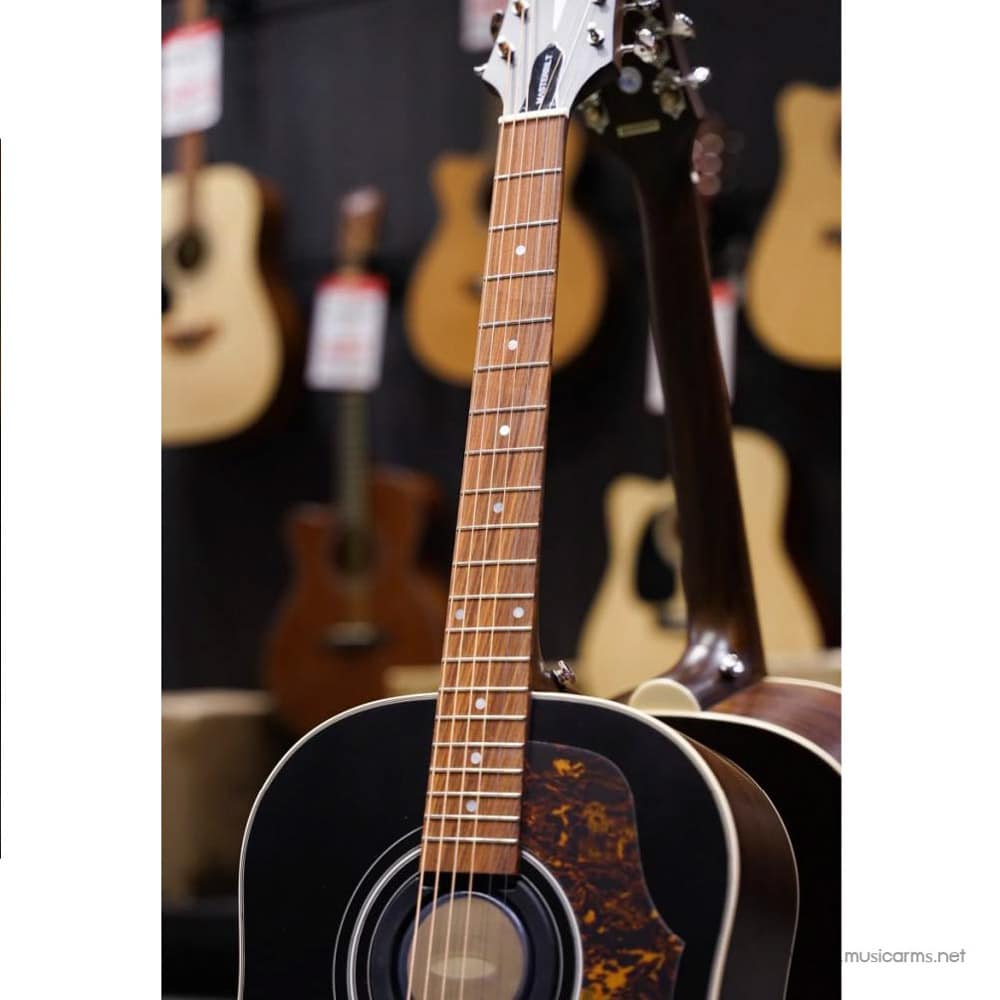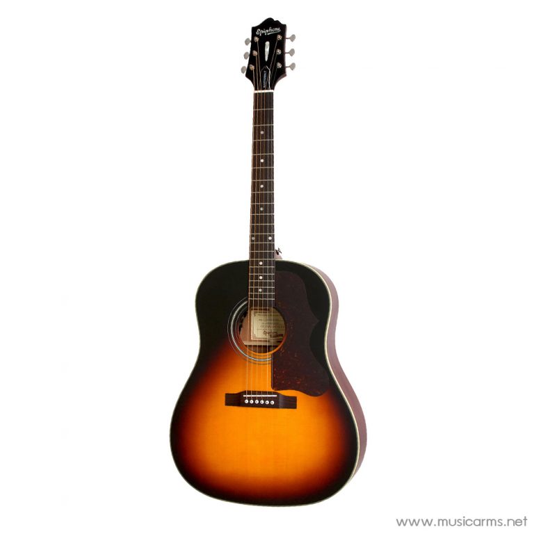 Epiphone Masterbilt AJ-45ME อีกรุ่นจากค่ายดัง ซีรี่ย์นี้มีความพิเศษที่ทำจากไม้แท้ทุกส่วน ทั้งบอดี้ที่เป็นโซลิดมะฮอกกานี ให้โทนเสียงที่มีควานุ่มละมุน เสียงเบสหนาชัด ปะหน้าด้วยท็อปโซลิดซิทก้าสปรู๊ซเพื่อเพิ่มเสียงกลางให้มีความโดดเด่นยิ่งขึ้น มาพร้อมภาคไฟฟ้าจาก Fishman Sonitone แบบฝังในแซดเดิ้ล ช่วยให้เสียงไฟฟ้ามีความใสเป็นธรรมชาติสามารถออกงานได้สบายๆ และอะไหล่งานที่คัดสรรมาอย่างดีทำให้ดีไซส์รุ่นนี้มีความสวยงามโดดเด่น อีกทั้งยังได้รับแรงบันดาลใจจาก Iconic J-45 อันเก่าแก่ ที่รูปแบบเป็นทรงเดรทน็อตแบบ round shoulder หรือทำช่วงขอบโค้งมนให้วางแขนง่ายขึ้นในตำนาน เรียกได้ว่าเป็นรุ่นที่คุณภาพล้นเลยก็ว่าได้สำหรับรุ่นนี้ เเนะนำเลย