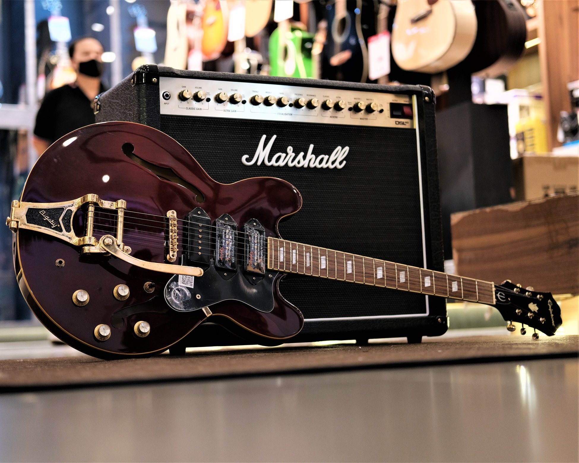 เรื่องภาคไฟฟ้าจัดเต็มมาด้วยปิ๊กอัพรุ่น Epiphone P-90 “Dogear” ทั้งสามตัว และความพิเศษคือสามารถปรับลดโวลุ่มของแต่ละปิ๊กอัพเองได้ ตัวปิ๊กอัพเป็นแม่เหล็ก Alnico V ที่ให้เสียงหวานฉ่ำและค่อนข้างหนา เป็นการตอกย้ำอย่างดีว่ากีต้าร์รุ่นนี้จะเป็นซาวด์วินเทจหวานๆเช่นเดียวกับดีไซด์ภายนอก ปลายบริดจ์สุดคลาสสิคแบบ Bigsby® B70 ที่ใช้ในปี 1970 วัสดุอื่นๆบนตัวกีต้าร์ชุบสีทองเพื่อความหรูหราโออ่า เมื่อเทียบกับราคาแล้วบอกเลยว่าถูกเหลือเชื่อ นักดนตรีสายบลูส์คนไหนยังไม่มีกีต้าร์คู่กายคงต้องเล็งเจ้ารุ่นนี้กันให้ไว รับรองว่าเสียงโดนใจ