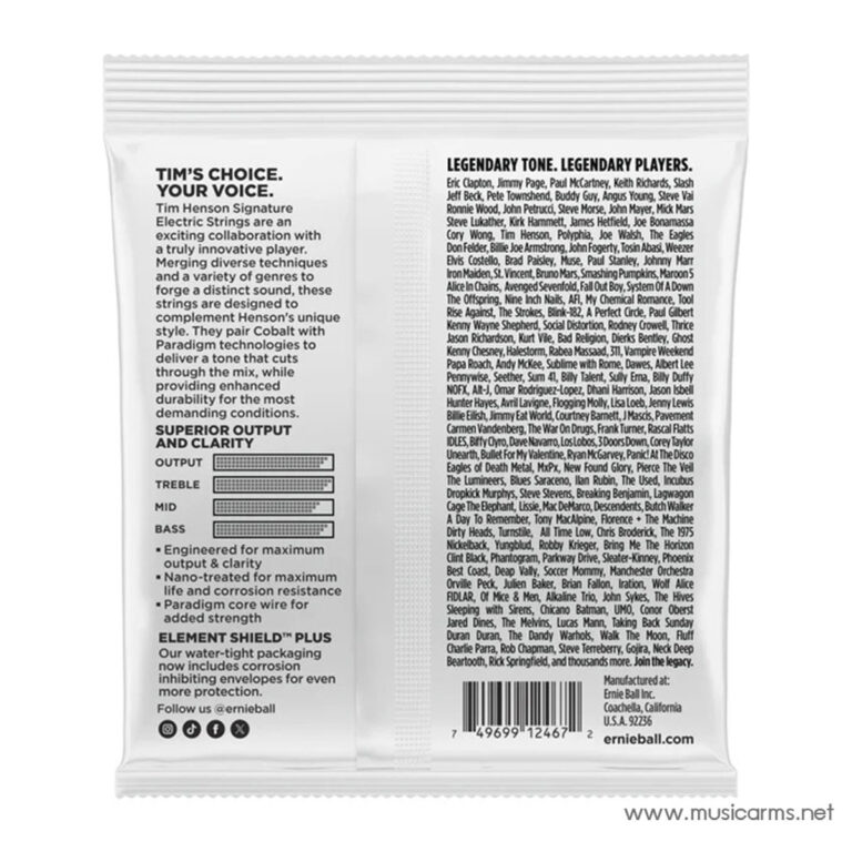 สายกีตาร์ไฟฟ้า Tim Henson Signature ให้โทนเสียงแบบคลาสสิก โดยใช้แกน Paradigm เพื่อเพิ่มความแข็งแรงและความทนทาน ควบคู่ไปกับการพันด้วยโคบอลต์ ซึ่งช่วยเพิ่มเอาท์พุต ฮาร์โมนิก และความยั่งยืน พร้อมเสียงสูงที่คมชัดและใสสะอาด