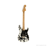 This white with black stripes Eruption tribute model also features unique appointments such as a skirted Strat-style volume knob with 500K EVH Bourns Low Friction Pot and treble bleed circuit (reads as “TONE”), oversized strap buttons, black pickguard, Strat-style output jack plate, eye-bolt guitar strap hooks, brass nut and ’70s-style licensed Fender Strat headstock with gold EVH logo. An EVH striped gig bag is also included.