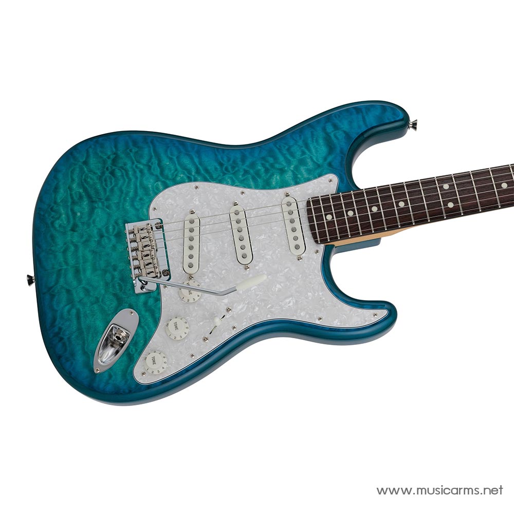 Fender 2024 Collection Hybrid II Stratocaster Quilt กีตาร์ไฟฟ้างาน Made in Japan ปี 2024 ซึ่งจะเป็นรุ่น Hybrid ผสมผสานความวินเทจที่เป็นเอกลักษณ์ของ Fender เข้ากับการใช้งานที่ทันสมัย รุ่นนี้จะมีความพิเศษที่ได้ไม้หน้า Quilt Maple ช่วยให้ตัวกีตาร์สวยงามมากขึ้นและยังเพิ่มเสียงกลาง คอเมเปิลทำทรง Modern แบบสมัยใหม่ บางเล่นง่าย ปิ๊กอัพ 3 ตำแหน่งเป็นรุ่น Hybrid II Custom Voiced Single Coil Stratocaster® ได้ซาวด์ที่คมชัด โน้ตเด้ง เหมาะกับดนตรีทุกประเภท โดดเด่นทั้งในด้านประสิทธิภาพและรูปลักษณ์
