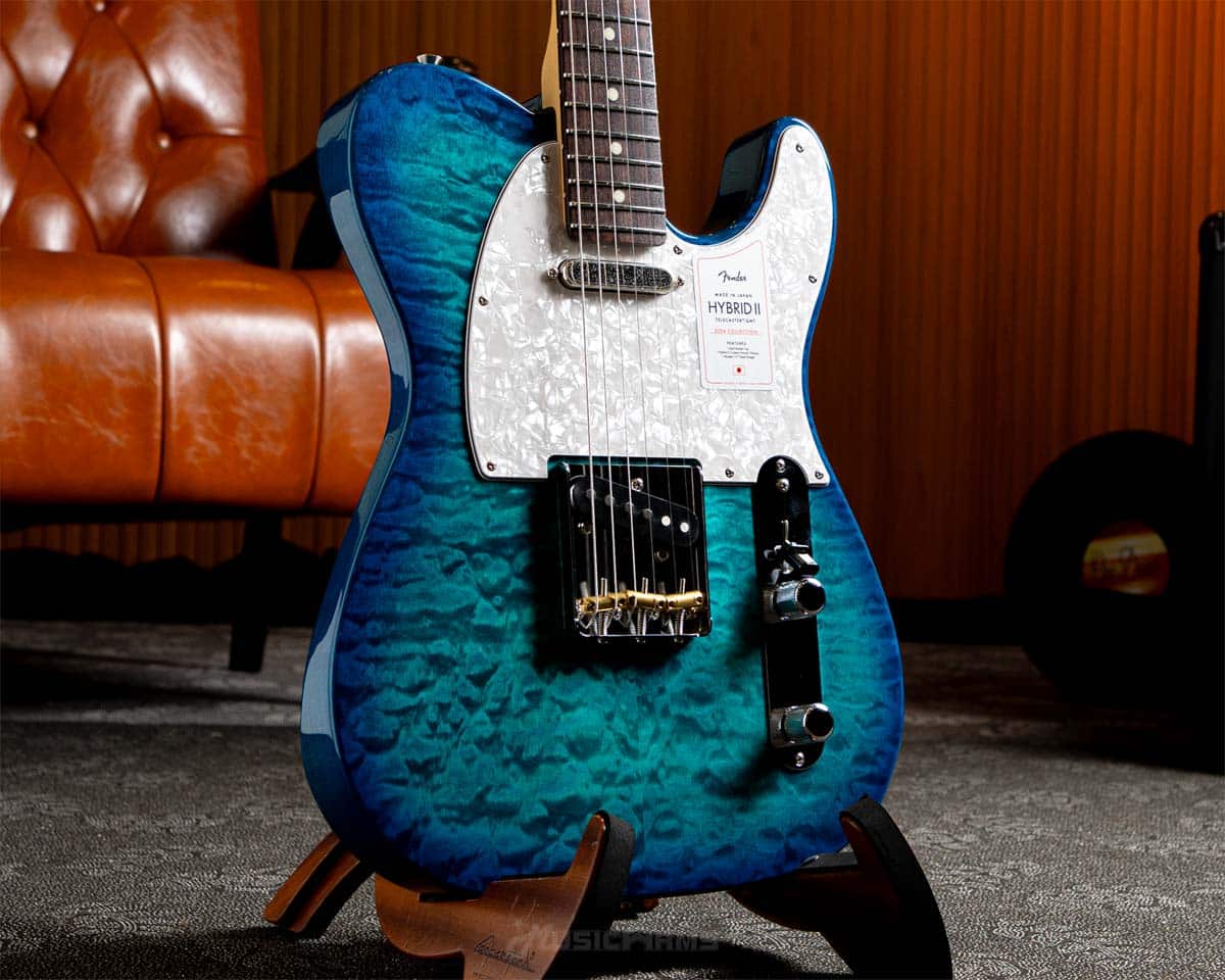 Fender 2024 Collection Hybrid II Telecaster Quilt กีตาร์ไฟฟ้าทรง Telecaster ยอดนิยม ซึ่งรุ่นนี้จะมีความพิเศษตรงที่ได้ไม้หน้า Top Quilt Maple ช่วยให้ตัวกีตาร์ดูมีความโดดเด่นมากขึ้นและยังเพิ่มเสียงกลาง บอดี้ไม้เอลเดอร์ คอไม้เมเปิล ฟิงเกอร์บอร์ดโรสวูด งานผลิตในญี่ปุ่นมั่นใจได้เรื่องคุณภาพงานประกอบ ปิ๊กอัพที่ให้มา 2 ตำแหน่งเป็นรุ่น Hybrid II Custom Voiced Single Coil Telecaster® ที่ได้รับการออกแบบใหม่ ฮาร์ดแวร์แบบวินเทจ คอรูปทรงโมเดิร์น “C” ฟิงเกอร์บอร์ดรัศมี 9.5 นิ้ว และ narrow tall frets ซึ่งช่วยให้การเล่นมีความราบรื่นมากขึ้น