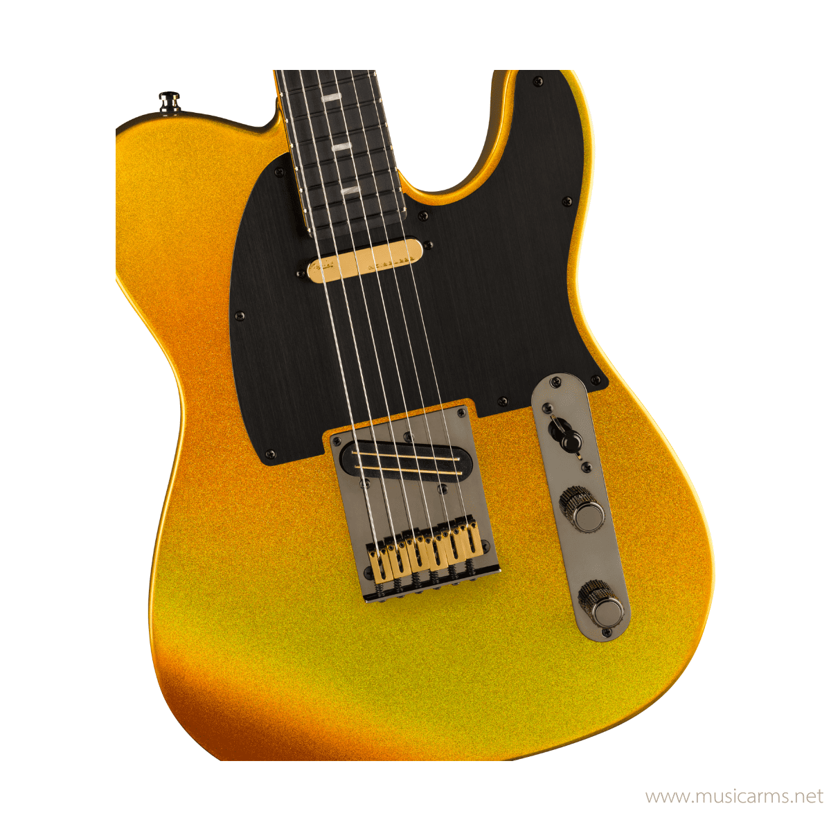 - สีพิเศษ Liquid Gold & Ultra Satin Finish: ผิวสัมผัสแบบเมทัลลิกที่สะท้อนแสงอย่างสวยงาม คู่กับคอไม้ Quartersawn Maple เคลือบผิวแบบ Ultra Satin ช่วยให้การเล่นลื่นไหลไม่มีสะดุด