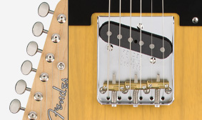 For thumb-behind players who like a good, solid neck in the hand, this Tele’s ’50s “U” profile is aces. Where the American Original ’50s Telecaster has the advantage over a classic ’52 is its enlarged 9.5″ (from 7.25″) fingerboard radius, which allows for upper-register leads and bends with less risk of fretting out.