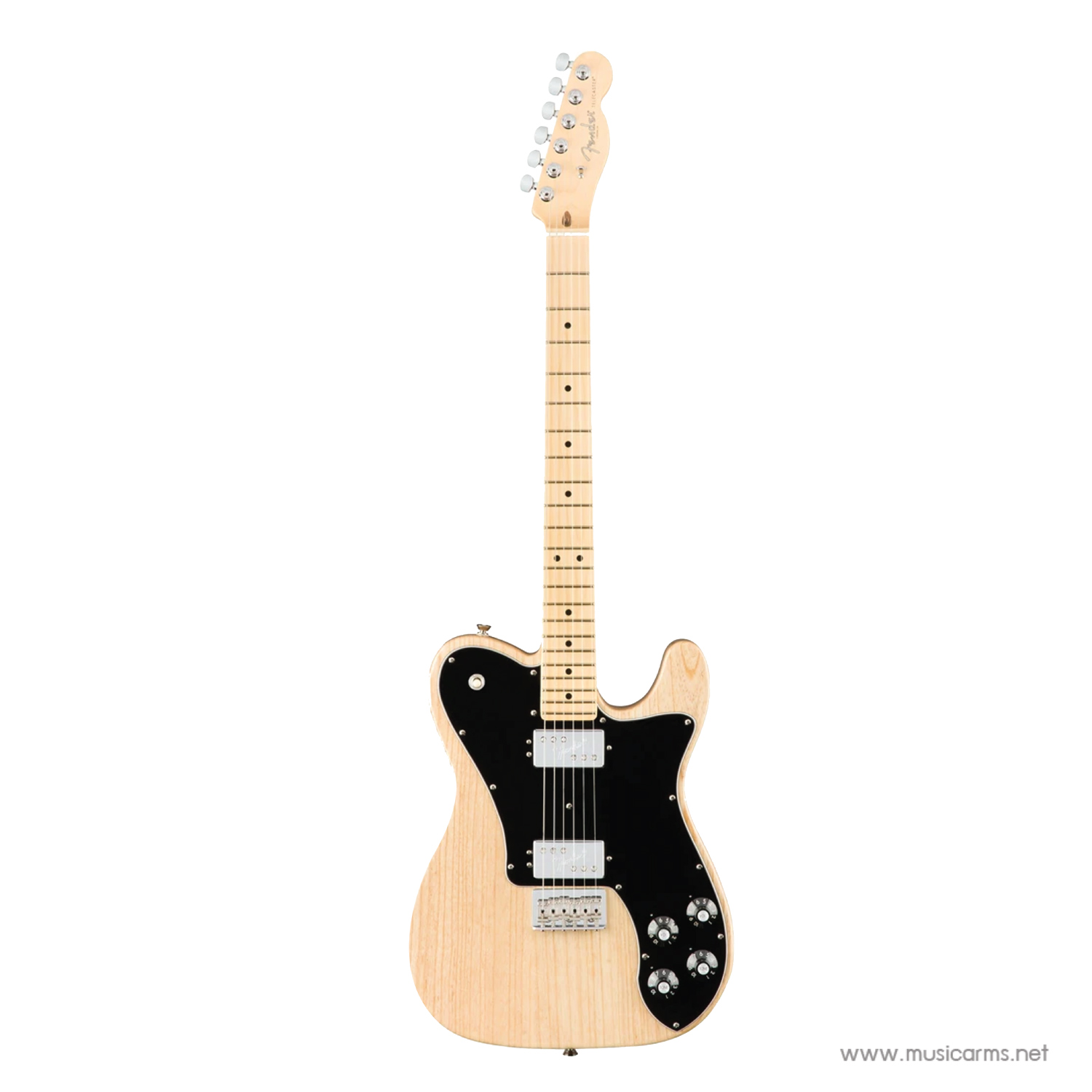 Fender American Professional Deluxe ShawBucker Telecaster กีต้าร์สุดหรูสไตล์อเมริกัน โปรเฟสชั่นแนล บอดี้เป็นไม้เอลเดอร์ให้เสียงกลางโดดเด่นและมีน้ำหนักที่เบา คอเป็นไม้เมเปิลเสียงเด้งชัดทุกตัวโน๊ต ทำทรงคอแบบบางสมัยใหม่ จับง่ายเล่นง่าย ภาคไฟฟ้านั้นเป็นรุ่น Shawbucker Humbucker ให้เสียงหนา พุ่งแรง เล่นได้ทุกแนวเพลง เสียงคลีนใสชัด วัสดุอื่นๆคัดสรรมาอย่างดีไม่ว่าจะเป็น Nut ทำจากกระดูก และยังมีระบบวงจร Treble bleed รักษาเสียงสูงไว้โดยไม่ลดความดังของเสียงลง งานเนี๊ยบแบบนี้ เห็นแล้วต้องหลงรัก
