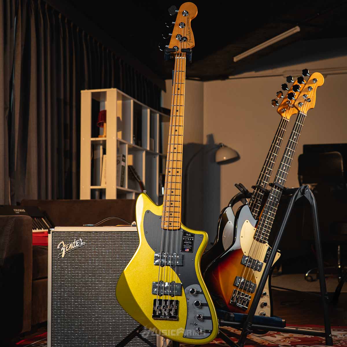 คุณสามารถเสียบ American Ultra II Meteora Bass เข้ากับอะไรก็ได้ ตั้งแต่คอมโบหลอดแบบเก่าไปจนถึงซอฟต์แวร์โมเดลดิ้งดิจิทัล และคุณจะได้สัมผัสกับเสียงที่แน่นและเข้มข้น ด้วยประสิทธิภาพที่คุณคาดหวังจากอิเล็กทรอนิกส์ที่ทันสมัย American Ultra II Meteora Bass มาพร้อมกับพรีแอมป์แบบแอคทีฟ 18 โวลต์เพื่อเพิ่มขีดความสามารถในการควบคุมเสียงและช่วงความถี่แบบกว้าง การจัดวางควบคุมรวมถึงระดับเสียงหลักพร้อมสวิตช์ S-1 แบบกด-กด ปานพอตสำหรับการเลือกปิ๊กอัพ ปรับแต่งมิดเรนจ์แบบซ้อนและการควบคุมเสียงแบบพาสซีฟ การควบคุมเสียงแหลมแบบซ้อนและการควบคุมเสียงเบสแบบซ้อน รวมถึงสวิตช์แบบมินิสำหรับเลือกความถี่ของมิดเรนจ์ การควบคุมที่ครอบคลุมนี้ให้คุณมีอิสระในการสร้างเสียงเบสที่หลากหลายซึ่งเหมาะสำหรับการแสดงสดหรือการบันทึกเสียง