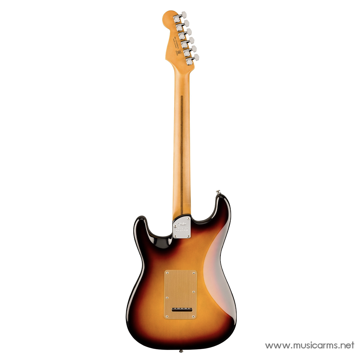 - สะพานสาย 2-point American Ultra Synchronized Tremolo พร้อมอานสะพานเหล็กกล้าไร้สนิมขัดเงาและบล็อกเหล็กกล้ารีดเย็น ช่วยให้ปรับเสียง Pitch ได้อย่างเต็มที่