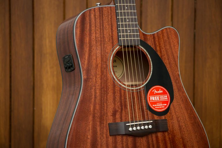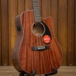 Combining powerful onboard electronics—including a built-in tuner—with great tone and easy playability, the CD-60SCE All-Mahogany is ideal for beginning to intermediate level players who are ready to plug in. Featuring a single-cutaway body for easy upper-fret access, warm-sounding solid mahogany top, easy-to-play neck and mahogany back and sides, the CD-60SCE is perfect for the couch, the beach or the coffeehouse—anywhere you want classic Fender playability and sound.