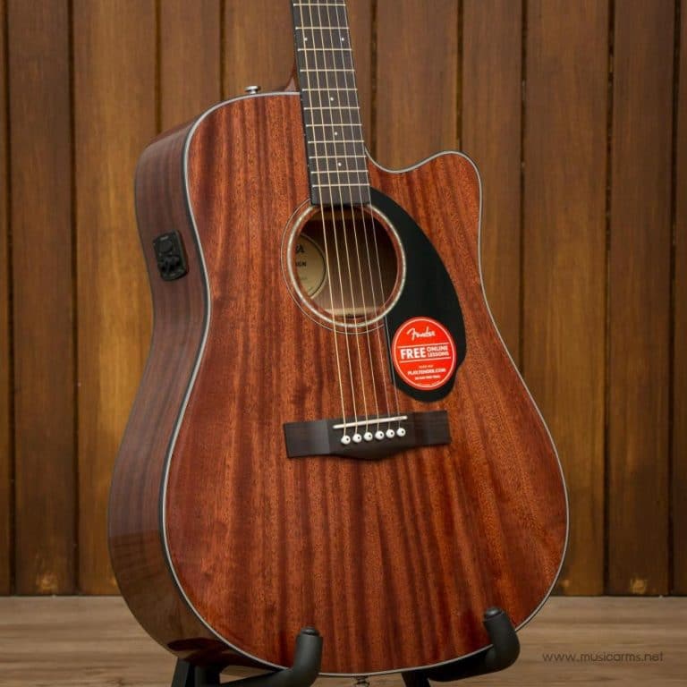 Fender CD-60SCE All Mahogany กีต้าร์เเบรนด์ดีจากค่ายดัง รุ่นนี้เป็นกีต้าร์โปร่งไฟฟ้าที่มีรูปทรงเดทนอทขนาดมารตฐาน แถมมีฐานการผลิตที่อินโดนีเซียด้วย ได้ไม้แท้ด้านหน้าไม้มะฮอกกานี บอดี้ด้านข้างเเละหลังทำจากไม้มะฮอกกานี ช่วยให้เสียงกีต้าร์มีความใส นุ่มละมุน อีกทั้งยังมาพร้อมกับปิ๊กอัพไฟฟ้าของ Fishman อีกด้วยสามารถจูนเสียงในตัวได้ อีกทั้งยังคอเล็กจับง่าย เหมาะมือกับผู้ที่เริ่มต้นหัดเล่น ราคาคุ้มสุดคุ้ม เเนะนำรุ่นนี้เลยครับผม