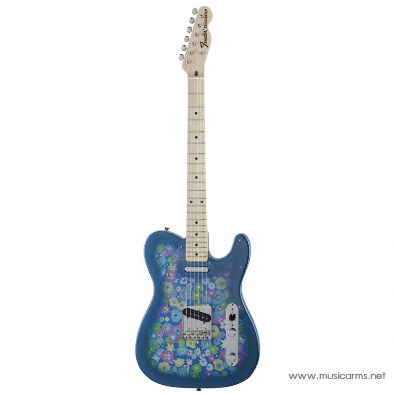 Fender Classic ’69 Blue Flower Telecaster กีต้าร์สุดแนวลวดลายดอกไม้สวยงามบนบอดี้ที่ทำสีฟ้าสดใส การดีไซด์กีต้าร์แทบทั้งหมดจะออกมาแบบวินเทจเพราะชื่อรุ่นก็บอกแล้วว่าคล้ายคลึงกับปี 1969 บอดี้ใช้ไม้เบสวู้ดเสียงแน่นๆ ส่วนคอเป็นไม้เมเปิ้ลแบบชิ้นเดียวเสียงเด้งชัดเป็นเม็ด เคลือบบอดี้และคอด้วยโพลีเอสเตอร์ซึ่งเป็นสารกันความร้อนเหมาะกับสภาพอากาศบ้านเราเป็นอย่างดี ช่วยให้ไม้ไม่โก่งงอง่าย