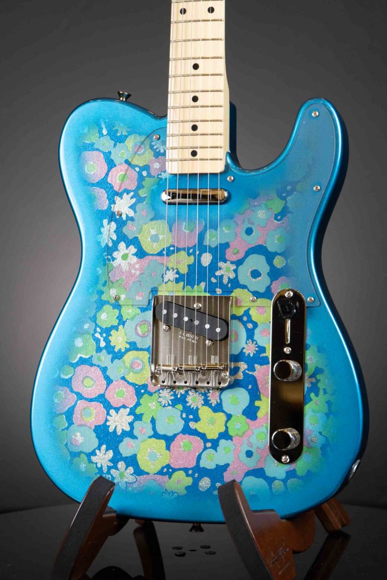 Chromed hardware, cast/sealed Gotoh tuning machines and a four-bolt neck plate; all the classic appointments that made a Telecaster shine on stage under the spotlights are here. Straddling the line between instrument and art, the ’69 Blue Flower Telecaster is a stunning example of Fender’s legacy of eye-catching aesthetics.