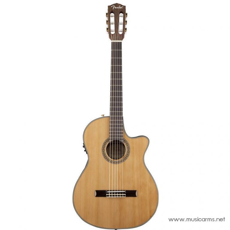 Fender CN-240SECE Thinline กีต้าร์โปร่งไฟฟ้าทรงบางเล่นง่ายทำสีไม้ธรรมชาติสวยงาม รุ่นนี้จะได้ไม้หน้าเป็นท็อปโซลิดเซดาร์ จะให้เสียงที่พุ่งดัง คมชัดกว่าไม้สปรู๊ซ จึงต้องเสิรมด้วยส่วนข้างปละหลังไม้โรสวู้ดซึ่งเป็นไม้โทนเสียงหนา เช่นเดียวกับคอมะฮอกกานี ทำให้เสียงกีต้าร์มีมิติลึกและนุ่มนวลมากขึ้น โครงบอดี้วางรูปพัดแบบโมเดิร์นแข็งแรงทนทาน อินเลย์สุดแนวลายจุดที่ด้านข้างทำให้ส่วนคอนั้นดูเรียบหรูขึ้นเยอะ จำนวนเฟรตแค่ 18 เฟรต แต่ความยาวช่วงสายเท่าเดิมนั่นหมายถึงเฟรตจะกว้างเล่นง่าย ภาคไฟฟ้า Fishman Isys III ให้เสียงธรรมชาติแบบกีต้าร์โปร่ง ใครกำลังมองหากีต้าร์ทรงบางๆที่เล่นสบายๆเสียงดีๆ ถือว่าน่าสนใจไม่น้อย