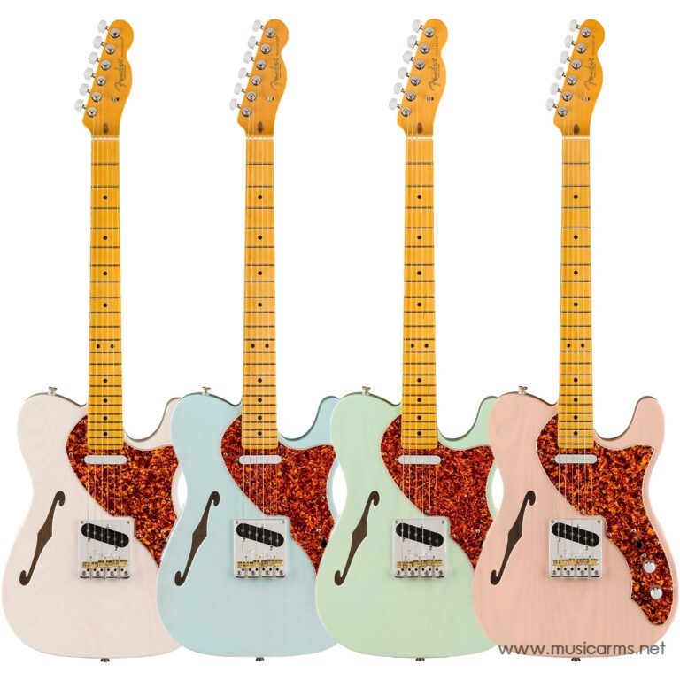 Fender American Professional II Telecaster Thinline นำเสนอความแปลกใหม่ในสไตล์วินเทจของ American Pro II Tele โดยรวมคุณสมบัติพิเศษทั้งหมดของรุ่นก่อนหน้าไว้ในกีตาร์ที่มีประสิทธิภาพสูงพร้อมตัวไม้แอชแบบกึ่งกลวงที่มีความก้องกังวาน American Pro II Tele Thinline มาพร้อมกับปิ๊กอัพ V-Mod Tele single-coil รุ่นใหม่ของ Tim Shaw ซึ่งให้เสียง twang ที่คุ้นเคยแต่มีความชัดเจนและโฟกัสที่ดียิ่งขึ้น กีตาร์ไฟฟ้าตัวนี้เล่นได้อย่างยอดเยี่ยมด้วยคอรูปทรง Deep “C” ที่เคลือบด้าน, ข้อต่อคอแบบ Contoured Heel, และฟิงเกอร์บอร์ดรัศมี 9.5 นิ้วพร้อมเฟรต Narrow Tall ที่ทนทาน นอกจากนี้ American Pro II Tele ยังมาพร้อมกับฮาร์ดแวร์ที่แข็งแรง เช่น บริดจ์ 3-saddle แบบ top-load/string-through ที่มีการชดเชยและเครื่องจูนแบบสเตกเกิร์ด เพื่อเสริมความสวยงาม กีตาร์ตัวนี้ยังมีการเคลือบแบบโปร่งใสด้วยสีเคลือบเงาแบบคัสตอมที่ทำให้มันดูสวยงาม ใครที่กำลังมองหากีตาร์ Tele แบบกึ่งกลวงระดับพรีเมียมจะต้องประทับใจกับ Fender American Professional II Telecaster Thinline