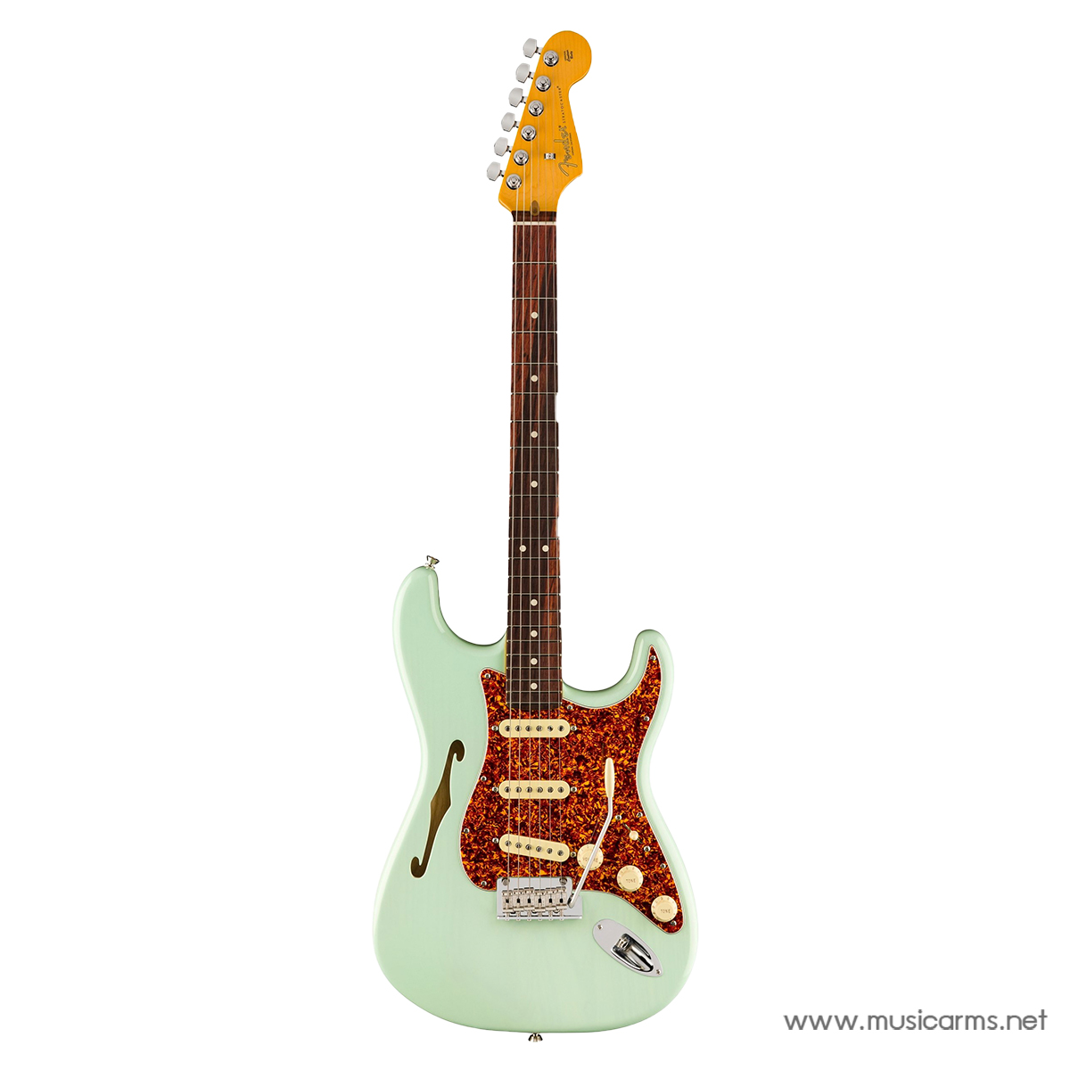 เมื่อ Fender แนะนำซีรีส์ American Professional II บริษัทมีวิสัยทัศน์เกี่ยวกับกีต้าร์พิเศษสำหรับนักดนตรีที่ออกทัวร์ — Thinline Stratocaster นี้ยกระดับไปอีกขั้น กีต้าร์นี้รักษาการออกแบบที่ไม่มีวันตกยุคของ Strat ของ Fender ไว้พร้อมกับการผสมผสานองค์ประกอบของซีรีส์ Thinline ด้วยรูปลักษณ์ที่สวยงามและมีการสะท้อนของ “F” soundhole บนลำตัว ash แบบ single-cut ที่มีคุณภาพเสียงที่สวยงามขณะไม่ได้เสียบและเสียง semi-hollow ที่ไม่เหมือนใครเมื่อใช้งานกับแอมป์ มันให้เสียงที่อบอุ่นและมีการสั่นสะเทือนที่ยาวนานมากขึ้นและมีลักษณะเสียงที่นุ่มนวลกว่าเมื่อเทียบกับ Strat ที่เป็นลำตัวแข็ง ทำให้เป็นทางเลือกที่ยอดเยี่ยมสำหรับผู้เล่นที่กำลังมองหาเสียงและลักษณะ Strat ที่ไม่เหมือนใคร
