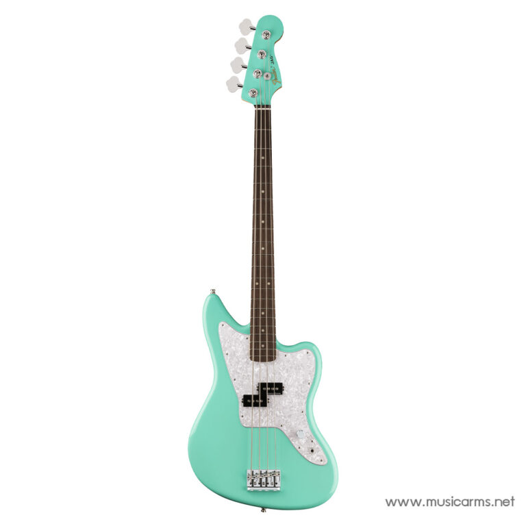 - ชื่อผลิตภัณฑ์: Mark Hoppus Jaguar® Bass, ฟิงเกอร์บอร์ด Rosewood, สีเขียว Sea Foam Green