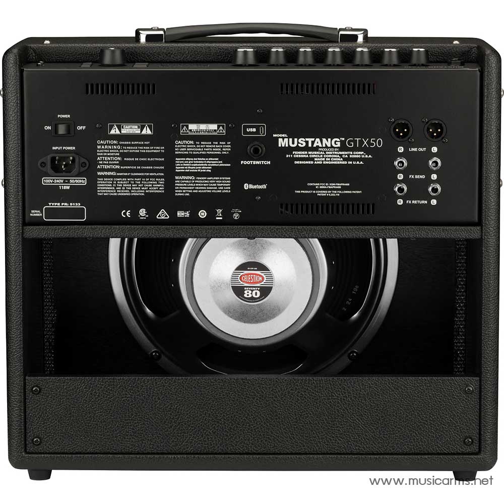 Fender Mustang GTX-50 แอมป์รูปแบบดิจิตอลที่มาพร้อมกับลูกเล่นอันหลากหลาย ใช้กำลังไฟเพียงแค่ 100 วัตต์แต่ได้พลังเสียงที่กระหึ่มเต็มคุณภาพเพราะตัวลำโพงนั้นออกแบบมาเป็นพิเศษโยทาง Fender เองซึ่งมีขนาด 12 นิ้วถึง และซีรี่ย์ Mustang GT ยังเป็นแอมป์ตัวแรกของโลกที่ติดตั้งระบบ Wi-Fi เอาไว้ สามารถโหลดแอพต่างๆทั้งระบบ iOS และ Android เข้าใช้งานได้โดยตรง รวมไปถึง Tone App สุดเอนกประสงค์จากทาง Fender ที่ช่วยให้คุณสามารถตั้งค่าเสียงต่างๆผ่านโทรศัพท์ได้เหมือนมีรีัโมทส่วนตัว