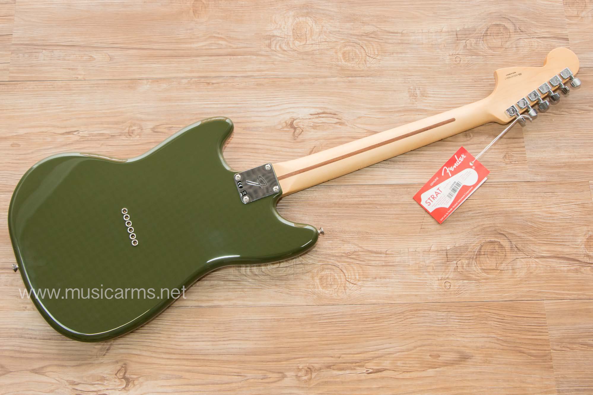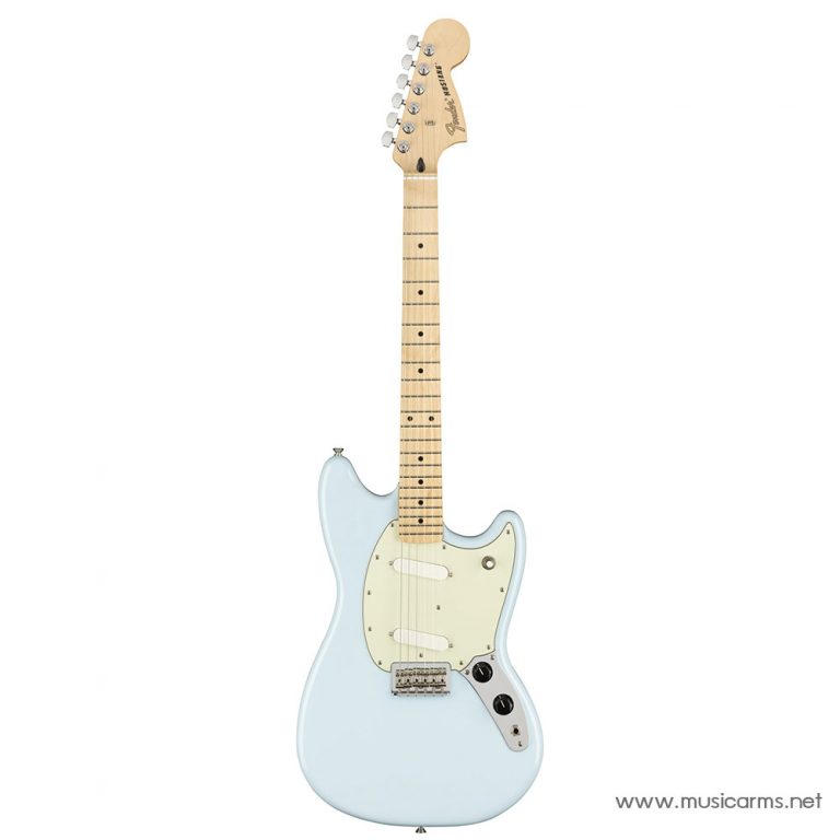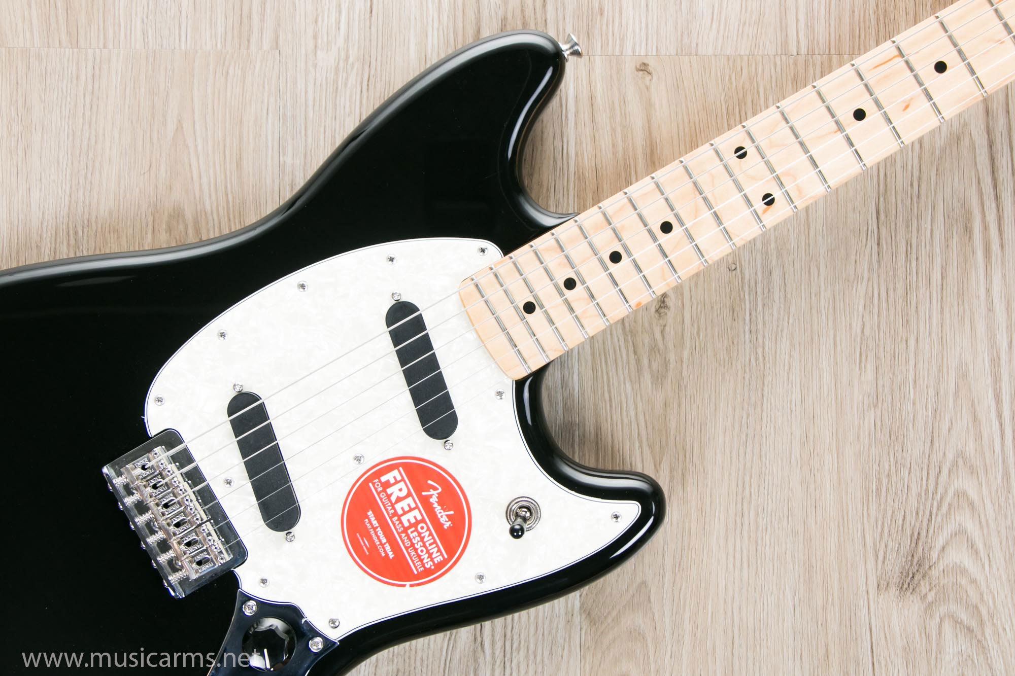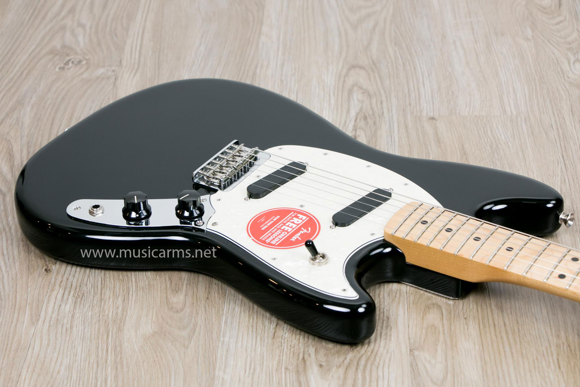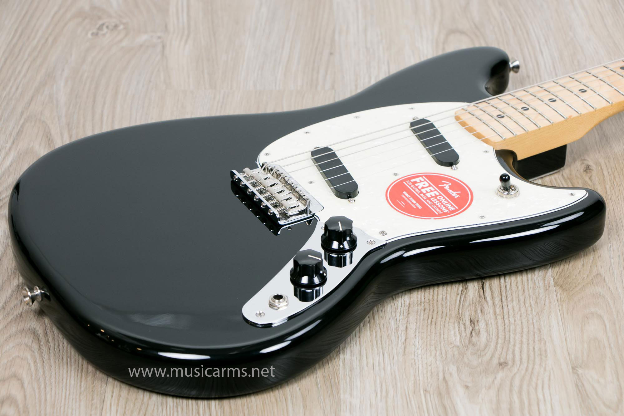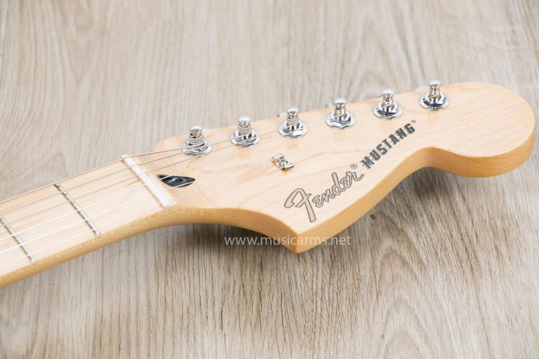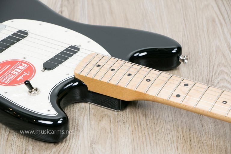 ส่วนคอและฟิงเกอร์บอร์ดนั้นทำจากไม้เมเปิ้ลให้เสียงกลางแหลมโดดเด่น เคลือบคอแบบด้านจับง่ายสบายมือด้วยโพลียูรีเทนทำให้ไม้ทนทาน ปิ๊กอัพนั้นจัดแบบ Single-coil มาให้ทั้งสองตำแหน่งเสียงกลางชัดตอบโจทย์ดนตรีทุกแนว วัสดุอื่นๆใช้ของคุณภาพสูงสมแบรนด์กีต้าร์เบอร์ 1 ของโลกไม่ว่าจะเป็นลูกบิดแบบวินเทจหุ้มด้วยพลาสติกสีดำหรือบริดจ์แบบ Strings-Through ถ้าใครชอบทรง Mustang คงไม่น่าพลาด
