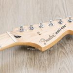 This Mustang model features a special neck plate engraved with a Fender “F” logo—a classic design element for Fender instruments.