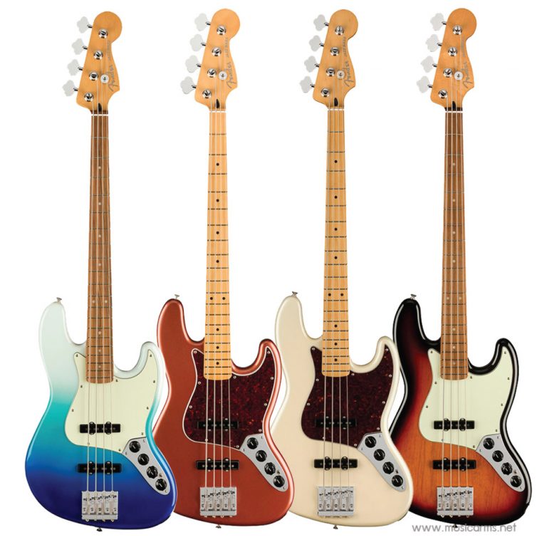 Fender Player Plus Jazz Bass อีกหนึ่งทรงยอดนิยม Jazz Bass ก็ถูกนำมาอยู่ในซีรี่ย์ Player Plus ที่ออกมาในปี 2021 โดยจุดเด่นของซีรี่ย์นี้จะเป็นในเรื่องของเสียงที่อัพเกรดให้ใช้งานได้กว้างและเอนกประสงค์ยิ่งขึ้น รวมถึงสีใหม่ๆที่ทาง Fender ออกมาเอาใจมือเบสกันถ้วนหน้า รุ่นนี้บอดี้จะเป็นไม้เอลเดอร์ให้เนื้อเสียงเด้งชัด คอไม้เมเปิลทำทรง C แบบสมัยใหม่ที่บางลงและเล่นได้ง่ายขึ้น ความพิเศษคือที่ปุ่มควบคุมคือสามารถบูสต์หรือตัดย่านความถี่เสียงได้ครบทั้ง 3 ย่าน ต่ำ กลาง สูง รวมถึงสวิทช์ที่สลับเลือกแบบ Passive และ Active ได้อีก ตัวปิ๊กอัพให้มาเป็นรุ่น Player Plus Noiseless™ Jazz Bass® ที่ทาง Fender คิดค้นเพื่อลดเสียงจี่ งานดีแบบนี้ ใครที่ชอบเบสทรง Jazz สามารถนำไปเล่นเพลงอื่นได้ครบทุกแนว รับรองว่าต้องชอบ