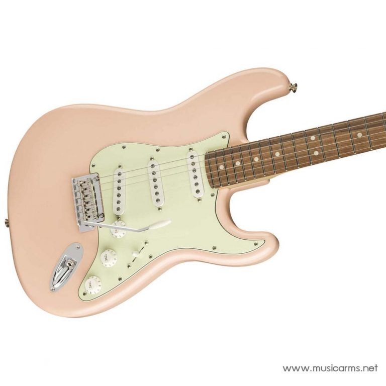 Fender Player Stratocaster Shell Pink Limited Edition งานลิมิเต็ดอิดิชั่นที่ออกแบบมาสำหรับมือกีตาร์ที่ต้องการสีสันสดใสแบบ Shell Pink บอดี้ไม้เอลเดอร์น้ำหนักเบาให้เสียงกลางดีเยี่ยม คอไม้เมเปิลทรง Modern C บางเล่นง่าย ฟิงเกอร์บอร์ดไม้พอล เฟอร์โร ขุมพลังเสียงเป็นปิ๊กอัพรุ่น Player Series Alnico 5 Strat Single-Coil 3 ตำแหน่ง เสียงคลาสสิคที่มีย่านแหลมที่คมชัด ย่านกลางมีความเด้ง และย่านต่ำที่มีพลัง ดีไซน์สวยงามและมีคาแร็คเตอร์ชัดเจน สามารถต่อคันโยกได้ งานประกอบได้มาตรฐาน เป็นอีกรุ่นที่ตอบโจทย์มือกีตาร์ได้ดี