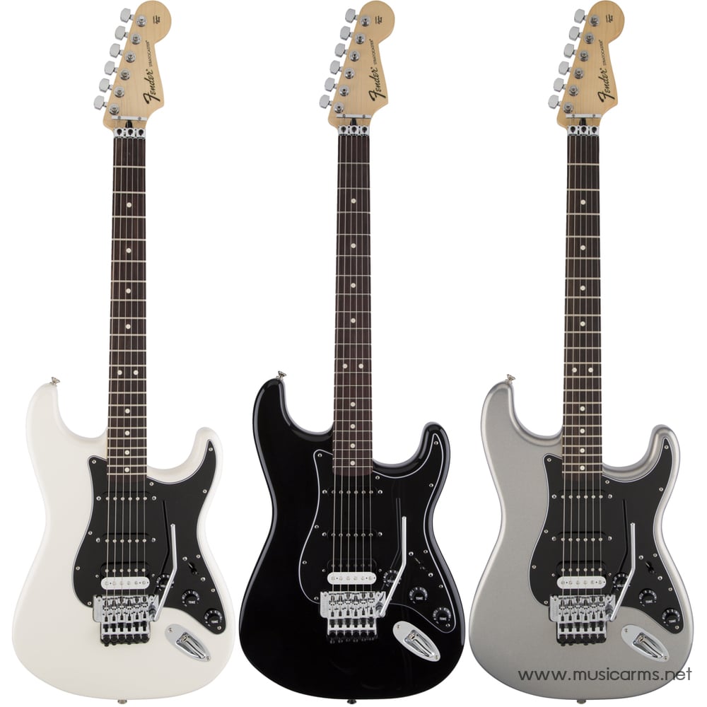 Fender Standard HSS w/ FR Stratocaster กีต้าร์ที่ทำมาโดนใจสายคันโยกด้วยการติดฟลอยด์โรสมาให้ บอดี้ไม้เอลเดอร์น้ำหนักเบาและได้คุณภาพเสียงกลางที่โดดเด่น คอเป็นไม้เมเปิ้ลยอดฮิตที่ให้เนื้อเสียงชัดเจนทุกตัวโน๊ต ฟิงเกอร์บอร์ดเป็นไม้โรสวู้ดผสานเสียงนุ่มนวลลงตัว ที่พิเศษคือตัว Nut และ บริดจ์จะเป็นแบบฟลอยด์โรสล็อคสายดีไม่มีเพี้ยน เหมาะสำหรับมือกีต้าร์ที่ต้องใช้คันโยกอยู่เป็นประจำเพราะจะหมดปัญหาการตั้งสายบ่อยๆ