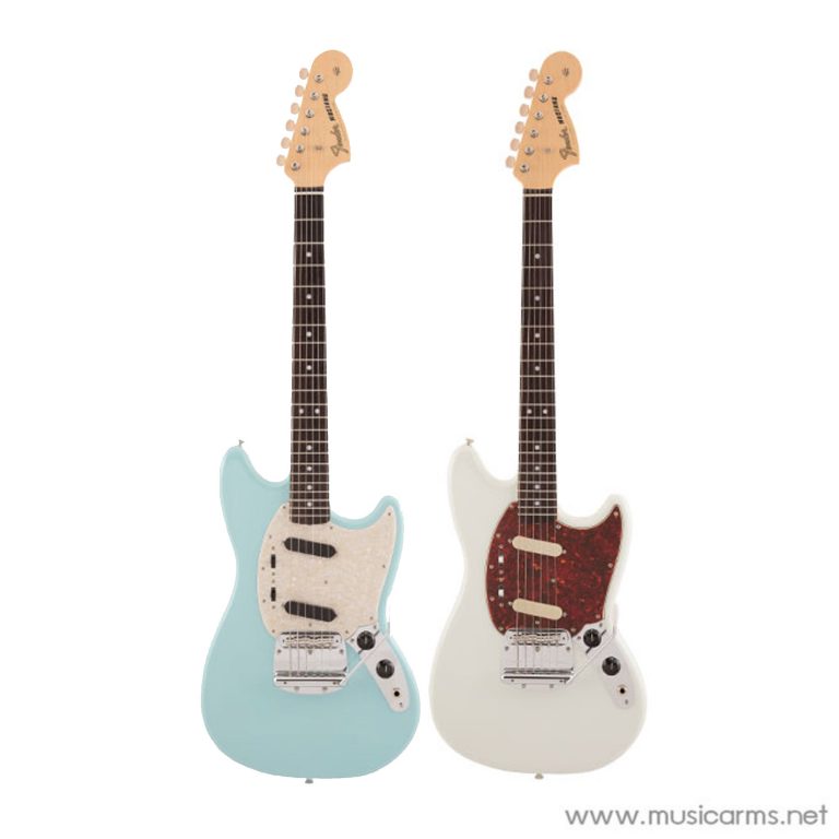 Fender Traditional II 60s Mustang กีตาร์ไฟฟ้างาน Made in Japan ซีรีส์แบบดั้งเดิมที่ได้มาจากการผสมผสานความสวยงามของการผลิตเครื่องดนตรีแบบดั้งเดิมของ Fender เข้ากับงานฝีมืออันประณีตของญี่ปุ่น บอดี้ไม้เบสวูด ทรงคอ U แบบวนเทจ ซึ่งการออกแบบและงานอะไหล่จะเน้นความย้อนยุคแบบช่วง 60s ฟิงเกอร์บอร์ดไม้โรสวูด เฟรตสไตล์วินเทจ 22 เฟรต ให้ประสิทธิภาพแบบคลาสสิกซึ่งเป็นเอกลักษณ์ของซีรีส์ดั้งเดิม ปิ๊กอัพเป็นรุ่น Single-Coil Mustang® 2 ตำแหน่ง ให้เสียงดนตรีแนววินเทจที่สมจริง ตอบสนองที่ยืดหยุ่นสำหรับความต้องการของผู้เล่น ถ้าชอบทรงแนวๆสายวินเทจ ต้องรุ่นนี้เลย