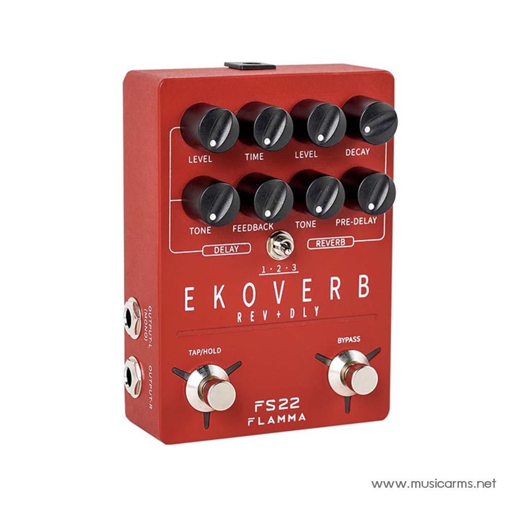 Flamma FS22 Ekoverb Guitar Stereo Dual Reverb Delay มีการผสมผสานเอฟเฟคดีเลย์และรีเวิร์บสามแบบซึ่งประกอบด้วยการตั้งค่า Reverse Delay/Swell Reverb, Analog Echo Delay/Mod Reverb และการผสมผสานเอฟเฟกต์ Analog Delay/Shimmer Reverb แบบคลาสสิก ระดับและโทนเสียงของดีเลย์และรีเวิร์บสามารถปรับเปลี่ยนได้ ตลอดจนจังหวะและการตอบสนองของดีเลย์ หรือการลดลงและการดีเลย์ล่วงหน้าของรีเวิร์บ สามารถใช้สวิตช์ Tap Tempo ตามชื่อ หรือคุณสามารถกดค้างไว้เพื่อเข้าถึงการ”หยุด” มีแจ็คอินพุตและเอาท์พุตแบบสเตอริโอหรือโมโน รวมถึงสวิตช์บายพาส ทำให้ง่ายต่อการรวมเข้ากับการตั้งค่าปัจจุบันของคุณ