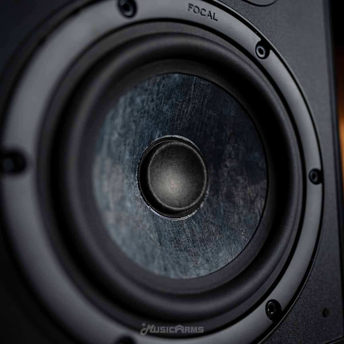 Alpha 50 Evo has a 1” (25mm) aluminium tweeter and a 5” (13 cm) woofer with Slatefiber cone developed and manufactured in Focal’s workshops in France. This monitor stands out for its dynamics, its neutrality of tonal balance and its excellent sonic coherence, guaranteed wherever you are listening.
