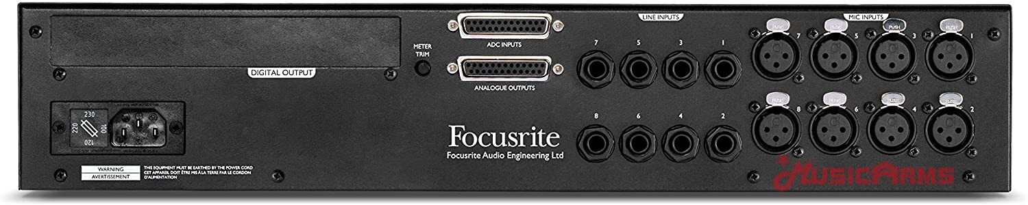 The ISA828 MKII features a variable impedance circuit with several settings, and also includes eight line/four instrument inputs with high and low impedance options. Using 25-pin D-type connectors, this preamp is easy to interface with Pro Tools HD rigs, as well as other popular DAWs and mixing desks. Another new feature is a slot for the optional Focusrite ISA ADN8 8-channel A-D card, for high-quality conversion to Dante, ADAT, and AES3 formats at sampling rates of up to 24-bit/192kHz. The preamps are complemented by eight rear-panel line inputs and four front-panel instrument inputs.
