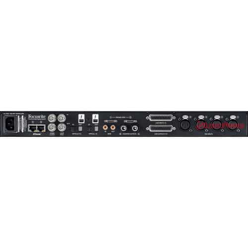 The Red 4Pre from Focusrite is a 58-input / 64-output, high-resolution audio interface with Thunderbolt 2, Pro Tools | HD, and Dante connectivity. The interface offers four Red Evolution microphone preamps, with -129 dBu of EIN and 63 dB of gain providing low noise floors with significant headroom, and includes the Air effect, which recreates the sound of transformer-based mic pres from the ISA range. All features of the preamps can be controlled from the front panel or from the included Focusrite Control software. In addition to housing the control surface, the front panel also features three color displays, two extended-headroom 1/4″ instrument inputs, and two 1/4″ headphone outputs with independent level controls.