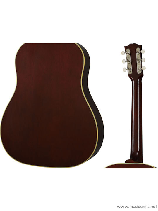 Gibson 1942 Banner J-45 เป็นการอุทิศให้กับกีตาร์ J-45 ในตำนานที่นักดนตรีหลงรักมาหลายยุคสมัย ผลิตขึ้นอย่างประณีตโดยใช้ไม้ Thermally Aged Adirondack red spruce สำหรับไม้หน้า พร้อมเคลือบซันเบิร์สต์แบบดั้งเดิมโดยการพ่นมือ ด้านข้างและด้านหลังเป็นไม้ Mahogany ที่เพิ่มความอบอุ่นและความลึกให้กับเสียง ในขณะที่โครงสร้างภายในแบบ Traditional hand-scalloped X-bracing พร้อมกาวหนังร้อน (hot hide glue) ช่วยให้กีตาร์มีการสั่นสะเทือนและโปรเจกชันของเสียงที่ยอดเยี่ยม กีตาร์อะคูสติกตัวนี้เป็นเครื่องยืนยันถึงมรดกแห่งงานฝีมือและนวัตกรรมของ Gibson
