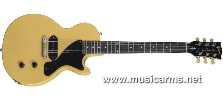 Gibson Les Paul Junior 2015 Single Cut กีต้าร์งานดีปี 2015 ที่ออกแบบมาได้แปลกแหวกแนวไม่น้อยกับการช้ปิ๊กอัพรุ่น P–90S T Dog Ear แค่ตำแหน่งเดียว ปิ๊กอัพรุ่นนี้จะให้ซาวด์ที่ไม่หนามากออกแนว Bright Tone จึงครอบคลุมแนวดนตรีแทบทุกแนว แผงคอนโทรลมีมาให้ 2 ปุ่มคือ โวลุ่มและโทน ซึ่งเป็นกีต้าร์เพียงไม่กี่รุ่นที่ไม่มีสวิทช์ปิ๊กอัพมาให้